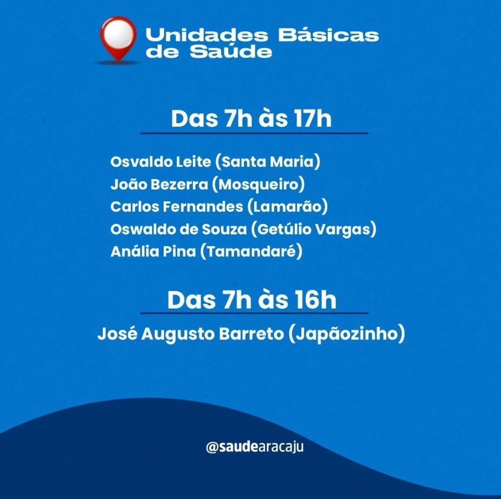 Têm horário estendido outras 11 Unidades, funcionando das 7h às 19h, que são: Augusto Franco (Farolândia), Geraldo Magela (São Conrado), Ministro Costa Cavalcante (Inácio Barbosa), Manoel de Souza (Jabotiana), Cândida Alves (Santo Antônio), Dona Jovem (Industrial), Edézio Vieira de Melo (Siqueira Campos), Francisco Fonseca (18 do Forte), José Calumby (Jardim Centenário), José Machado (Santos Dumont) e Onésimo Pinto (Jardim Centenário).