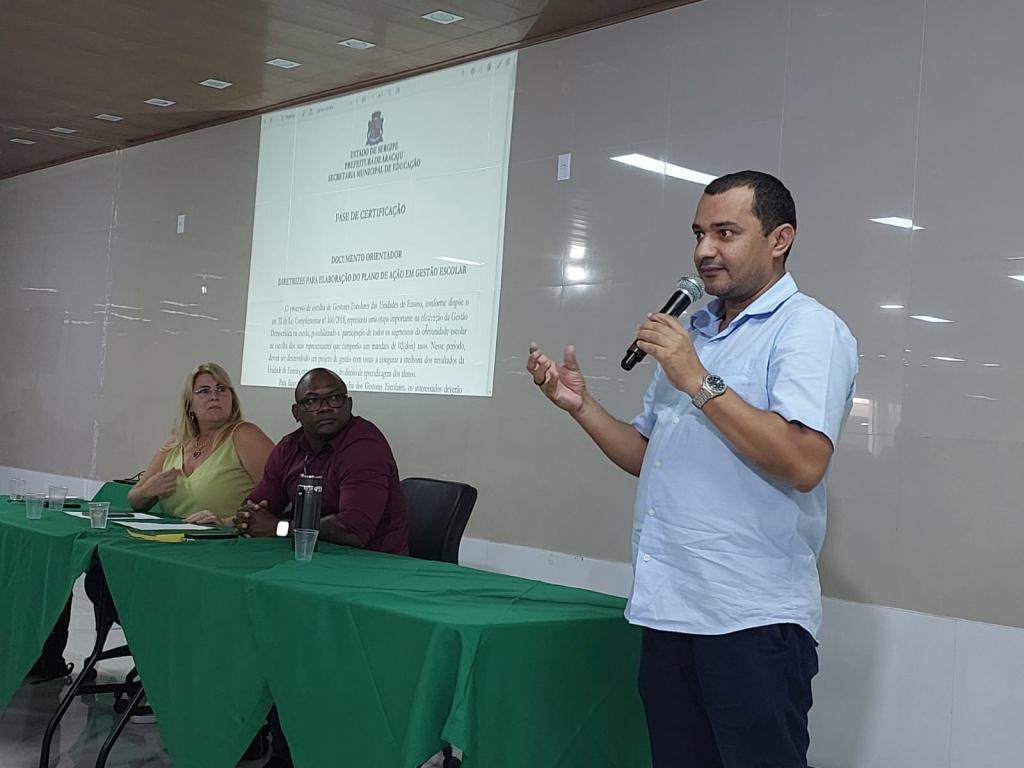 "Este foi um curso de vinte horas onde nós abordamos todos os princípios que regem o trabalho pedagógico da rede, todos os elementos que um bom gestor deve possuir para conduzir a sua unidade escolar de forma a alcançar o êxito que os alunos matriculados na nossa rede merecem. Diante da mudança na legislação nacional e do processo de aprimoramento que nós estamos realizando no âmbito da Semed, a defesa do plano de ação é um incremento diferente dos processos anteriores para que a gente consiga que os gestores sejam efetivamente escolhidos por critérios de mérito e desempenho. Então, adotamos estes critérios previstos na lei do Fundeb e na nossa lei de Gestão Democrática, para que a partir desta seleção prévia eles possam colocar o seu nome para a comunidade escolar", pontua o diretor de Educação Básica da Semed, Evilson Nunes.