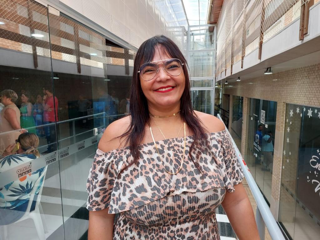 Esta foi a primeira vez que a professora Aline Graziele, da Emef Maria da Glória Macedo, participou da formação em gestão escolar promovida pela Semed. Ela salientou a importância das experiências compartilhadas pelos formadores.