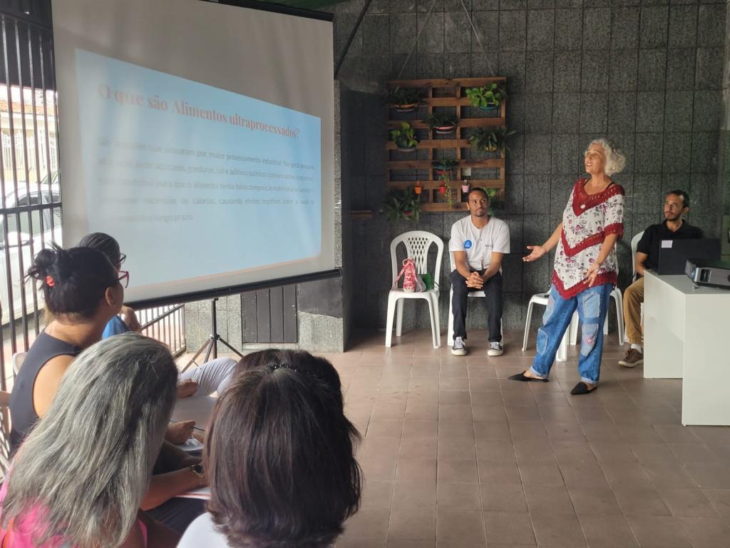 Ela ainda apresentou como exemplos de malefícios à saúde a ingestão de alimentos ultra processados, com alto teor de açúcar e sódio; e os benefícios do consumo de alimentos frescos, como frutas e legumes, para a saúde mental, a melhoria do humor e a concentração, trazendo mais disposição e sensação de felicidade. Também prenderam a atenção dos participantes as dicas de como é possível promover uma mudança de hábitos através das diversas possibilidades de alimentação barata, sustentável e saudável.