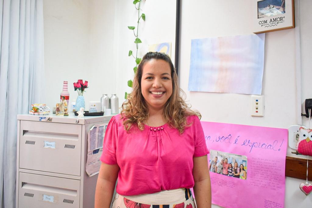 “Não era a unidade de ensino mais próxima, mas resolvi colocar ele aqui, justamente, porque já tinha feito uma pesquisa e buscado saber como era o método de ensino. Eu já havia lido e visto muitos vídeos sobre esta metodologia, e aqui tudo me encantou. Para mim foi maravilhoso porque é o que eu sempre sonhei para eles. Eu já trabalhava o aprender brincando em casa. Coloco recorte de papel para ele fazer, pintura e outras atividades que unem brincadeira e aprendizado. Assim, a rotina escolar não saiu do meu cotidiano”, diz Albertina.