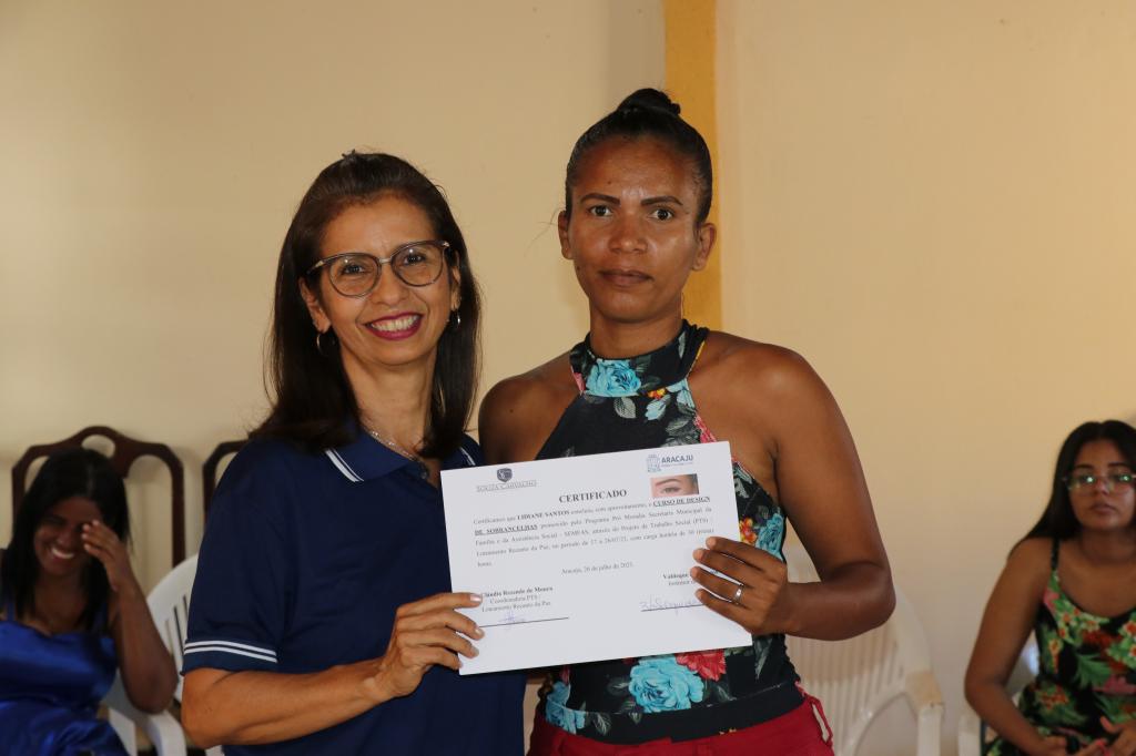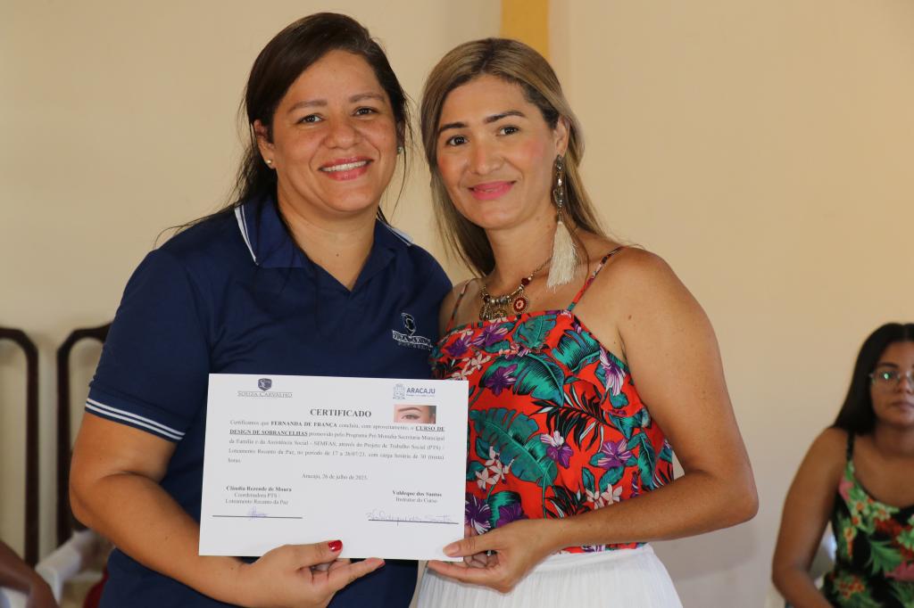 Com o objetivo de garantir a qualificação profissional para o desenvolvimento socioeconômico, a Prefeitura de Aracaju, por meio do Projeto de Trabalho Social (PTS), executado na comunidade Recanto da Paz, bairro Aeroporto, realizou na tarde desta quarta-feira, 26, o encerramento do curso de Designer de Sobrancelhas para 20 mulheres moradoras da localiade.