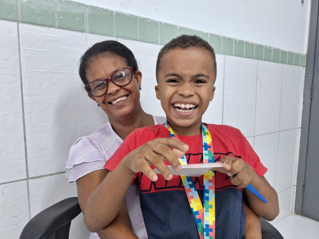 Elenilza da Silva Santos é mãe de Levi Felipe (8 anos), diagnosticado com autismo e TDAH. Ela chegou ao Centro de Especialidades Odontológicas há cinco anos e até hoje mantém atualizado o tratamento do filho. “Levi apresentou alguns problemas na boca e eu procurei a UBS; lá me orientaram que tinha um atendimento especializado para crianças com autismo e outros tipos de deficiências. Já faz mais ou menos cinco anos que iniciamos o tratamento de Levi e hoje ele está com os dentes bem cuidados”, conta.