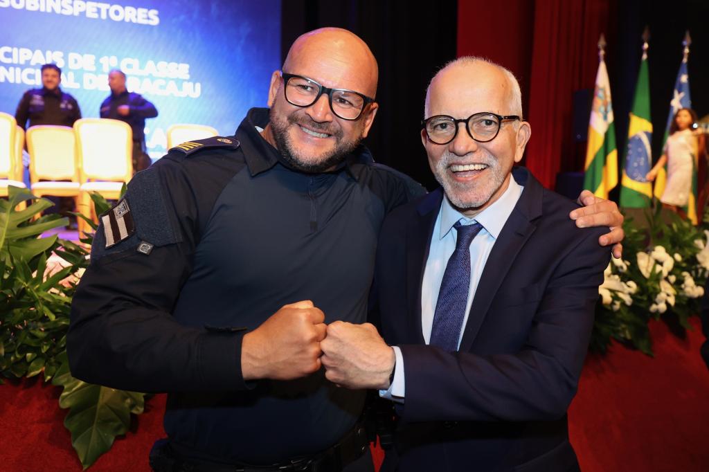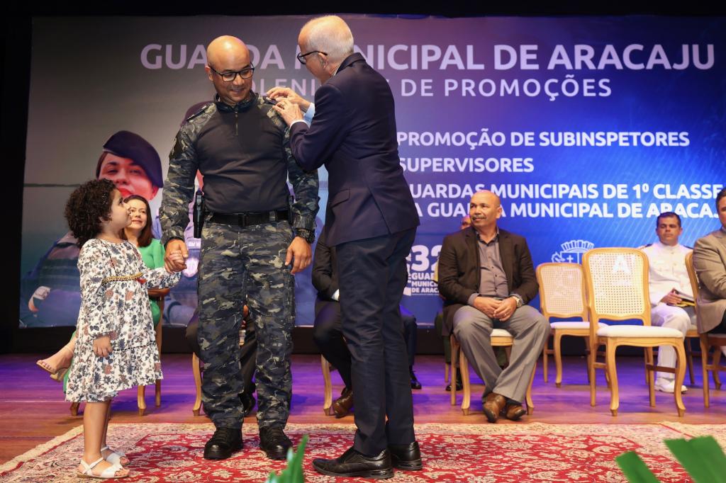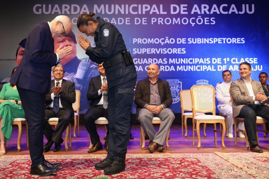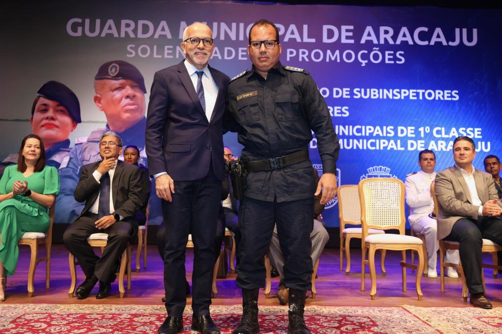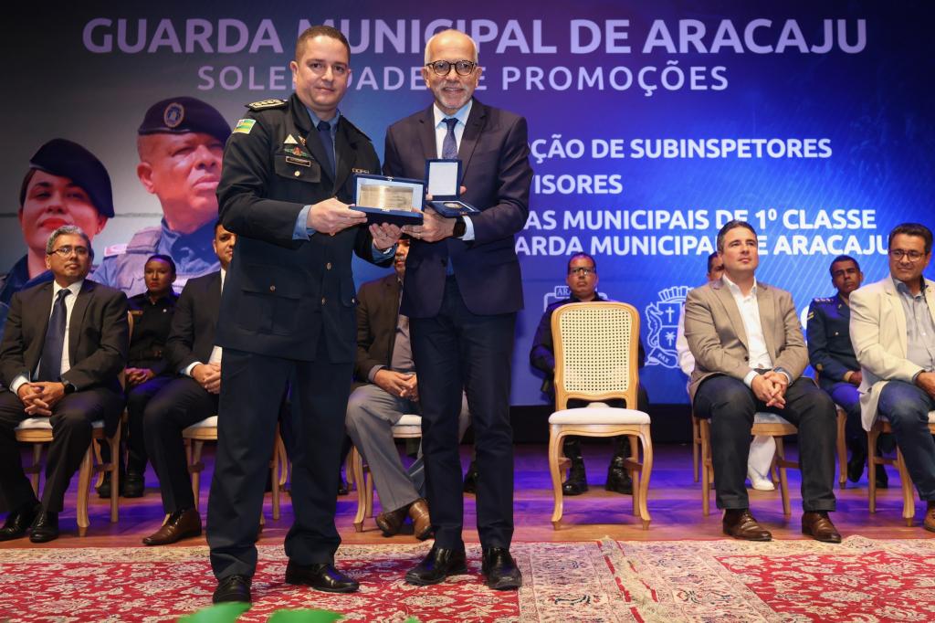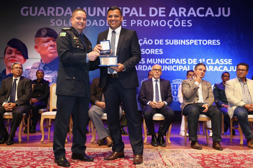 Comandante da Guarda Municipal, o subinspetor Fernando Mendonça definiu o momento como “o início de uma nova era para a corporação“. “É um dia marcante para cada guarda que compõe esta instituição. É a celebração e reconhecimento do valor destes profissionais que se dedicam a cuidar tão bem da nossa cidade. Essa promoção atende a um sonho que almejamos, pois tínhamos um plano de carreira que não atendia às demandas da Guarda. Então, é um reconhecimento da Prefeitura para a ação desses homens e mulheres que trabalham diuturnamente na segurança do nosso município”, frisou o comandante que entregou a medalha “Amigo da Guarda” para o prefeito Edvaldo Nogueira, para o secretário da Defesa Social, tenente-coronel Silvio Prado, e para o secretário da Fazenda de Aracaju, Jeferson Passos.