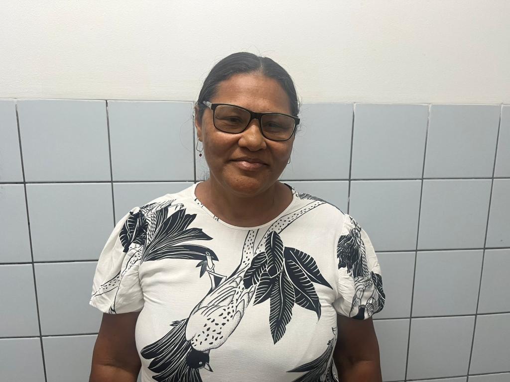 A usuária Elenildes Nunes da Silva, moradora do bairro Jardim Centenário, participou das ações do Sábado Saudável na Unidade Onésimo Pinto e reconheceu a importância da iniciativa.