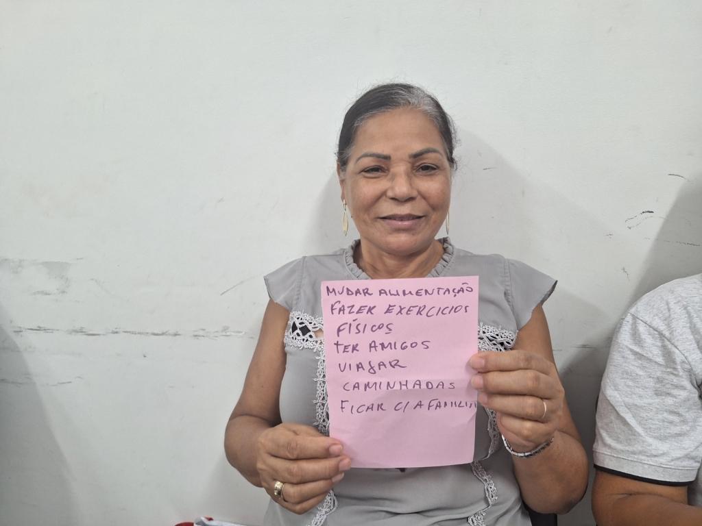 “Pretendemos, realmente, melhorar a qualidade de vida deles, verificar dentro desse grupo se há alguém com comorbidades, ou seja, hipertensão, diabetes ou outras doenças crônicas que são muito comuns na terceira idade. O intuito é promover hábitos saudáveis, realizar atividades para manter a saúde mental e minimizar as chances de acometimento de demências. Neste encontro, nós realizamos a aferição de pressão arterial e glicemia, peso e altura, além de obter outras informações que nos auxiliem a trabalhar com o monitoramento a fim de promover uma atenção integral dos usuários idosos”, frisa.