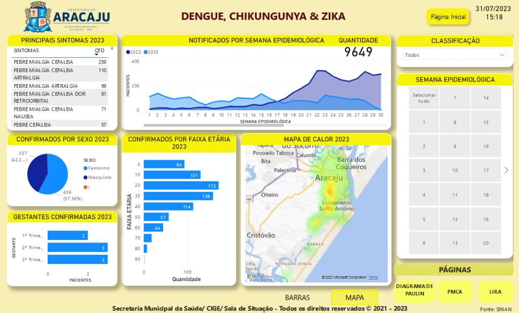 “A população também pode acompanhar pelo painel de monitoramento das doenças transmitidas pelo mosquito. A ferramenta apresenta dados, gráficos dos casos notificados e confirmados de dengue, zika e chikungunya na capital sergipana. O painel de monitoramento, disponível no link aracaju.se.gov.br/saude/indicadores_epidemiologicos, apresenta um histórico dos mapeamentos realizados, a fim de traçar um comparativo e, com isso, identificar ciclos de reprodução do mosquito em Aracaju”, explica o gerente do Programa, Jeferson Santana.
