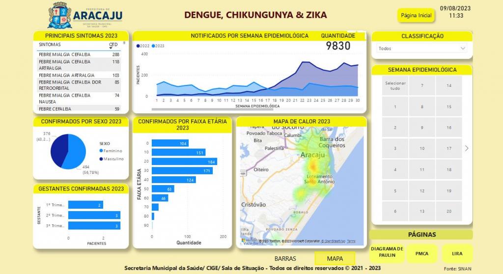 No painel, disponível para a população no site da Prefeitura de Aracaju, a população consegue visualizar dados da Vigilância Epidemiológica, a exemplo de casos de arboviroses, monkeypox, tuberculose, entre outros, que mostram a situação das síndromes gripais, incluindo a covid-19, e dados do Aedes aegypti.