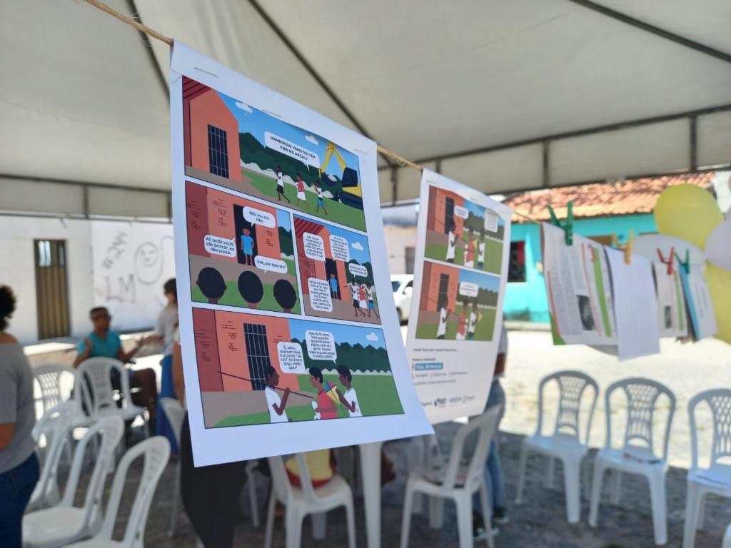O encontro com a comunidade também possibilitou a continuidade do diálogo sobre o direito a brincar em segurança, com o objetivo de evitar acidentes no canteiro de obras onde estão sendo realizados serviços de infraestrutura para o início da construção o conjunto residencial Lamarão. “Fizemos uma escuta com as crianças e adolescentes, preenchendo um painel colaborativo indicativo dos hábitos instituídos na comunidade envolvendo o brincar, e levando-os a pensar sobre locais alternativos para atividades lúdicas, de modo que o canteiro não seja uma opção”, explicou Ayara Wanderley, técnica social do Escritório de Atendimento à Comunidade da Perimetral Oeste.