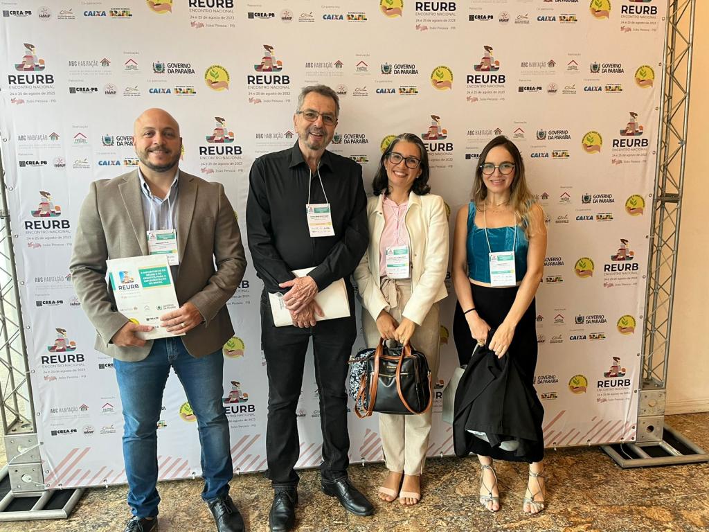 Acompanharam Sérgio Ferrari e representaram a Emurb no evento Fernando Antônio de Souza Filho, diretor de Habitação; Frankliniella Brito, coordenadora de Habitação; e a engenheira Jamille Couto.