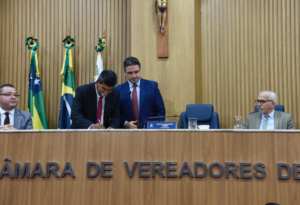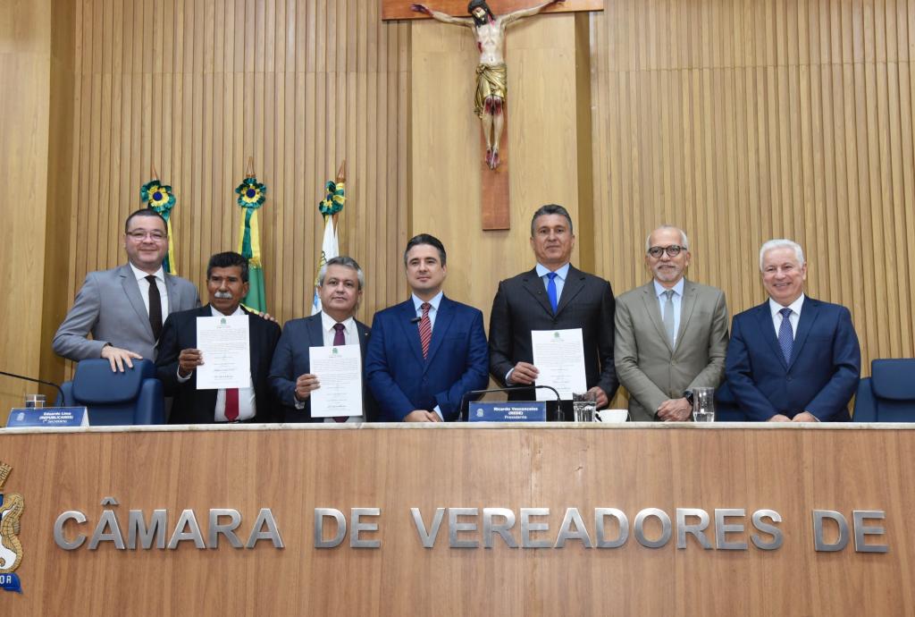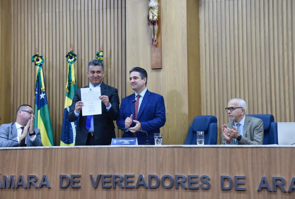 O prefeito Edvaldo Nogueira participou, na manhã desta terça-feira, 29, da cerimônia de posse dos vereadores Zezinho do Bugio, Elber Batalha e Bigode do Santa Maria. Os dois primeiros assumem as vagas titulares após decisão do Tribunal Superior Eleitoral (TSE) que cassou os vereadores Fábio Meireles e Sávio Neto de Vardo. Já o vereador Bigode ocupa a cadeira deixada por Manoel Marcos, que tomou posse como deputado estadual na Assembleia Legislativa. Ao acompanhar a solenidade, Edvaldo parabenizou os parlamentares e expressou seu desejo de que façam "um excelente trabalho pela capital".