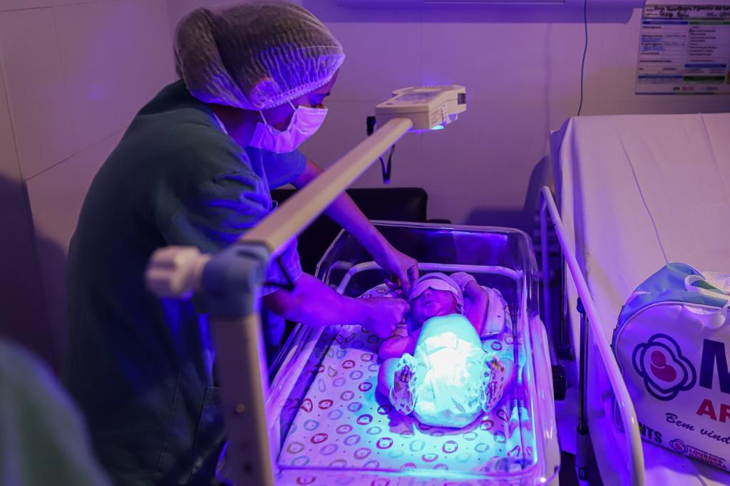 Ainda segundo a profissional, o acompanhamento constante é o elemento determinante para a adoção dos cuidados necessários. "A icterícia é uma condição que afeta muitos recém-nascidos, gerando uma coloração amarelada na pele e nos olhos. Isso ocorre devido ao acúmulo de bilirrubina, um pigmento que resulta da quebra dos glóbulos vermelhos. A fototerapia é um tratamento que usa luzes especiais para ajudar a reduzir os níveis de bilirrubina no sangue do bebê. A luz na frequência azul transforma a bilirrubina em uma forma mais solúvel, que pode ser eliminada pela urina e pelas fezes. A fototerapia é um tratamento simples, seguro e eficaz para a icterícia neonatal, que pode prevenir complicações graves como danos cerebrais", detalha a profissional.