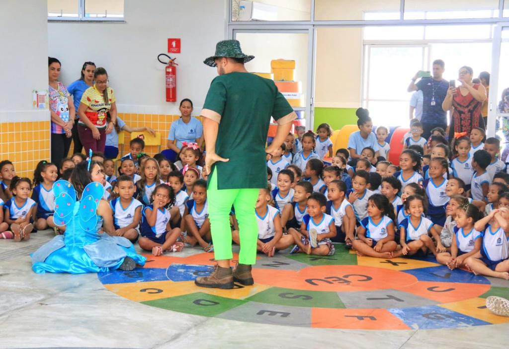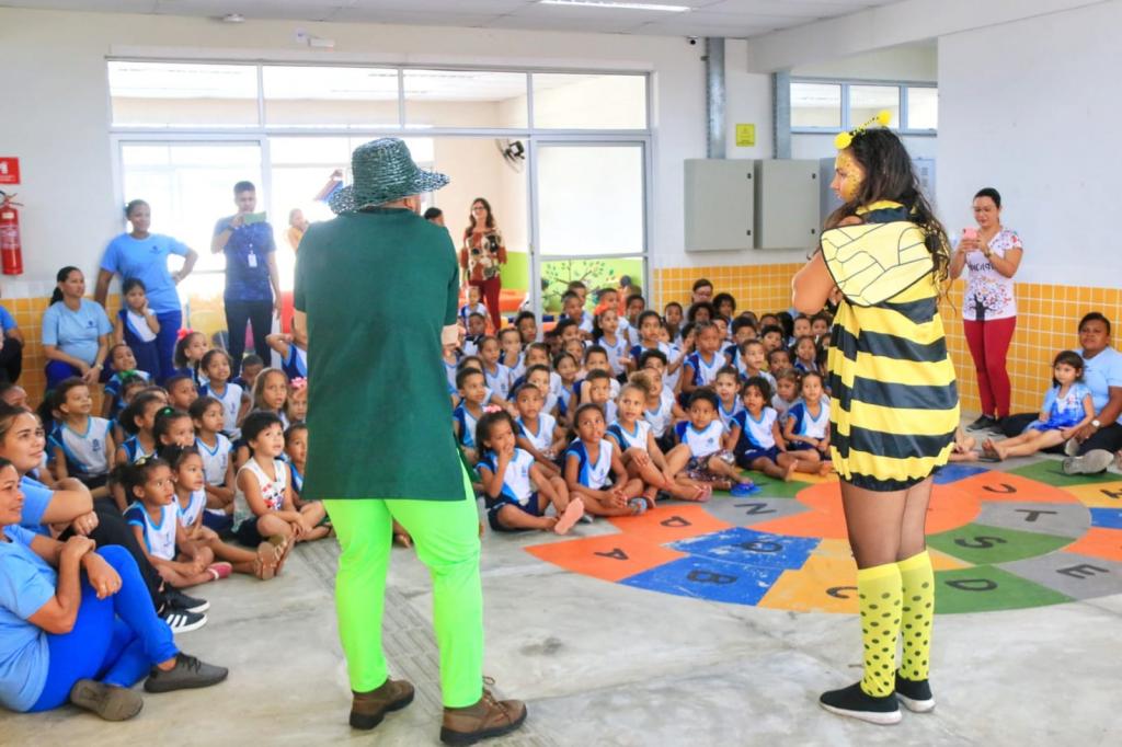 Sem dúvida, a manhã desta terça-feira, 5, foi especial e divertida para os 150 alunos da Escola Municipal de Educação Infantil (Emei) Maria Ruth Wynne Cardoso, localizada no bairro Santa Maria. Eles tiveram a oportunidade de conferir a apresentação da esquete teatral “Reinos”, encenada pelo grupo de Educação Ambiental da Secretaria Municipal do Meio Ambiente (Sema). Essa iniciativa é desenvolvida em parceria com a Secretaria Municipal da Educação (Semed) e reforça a preocupação da Prefeitura de Aracaju de envolver o público infantil em discussões relacionadas ao meio ambiente e aos desafios enfrentados pela natureza.