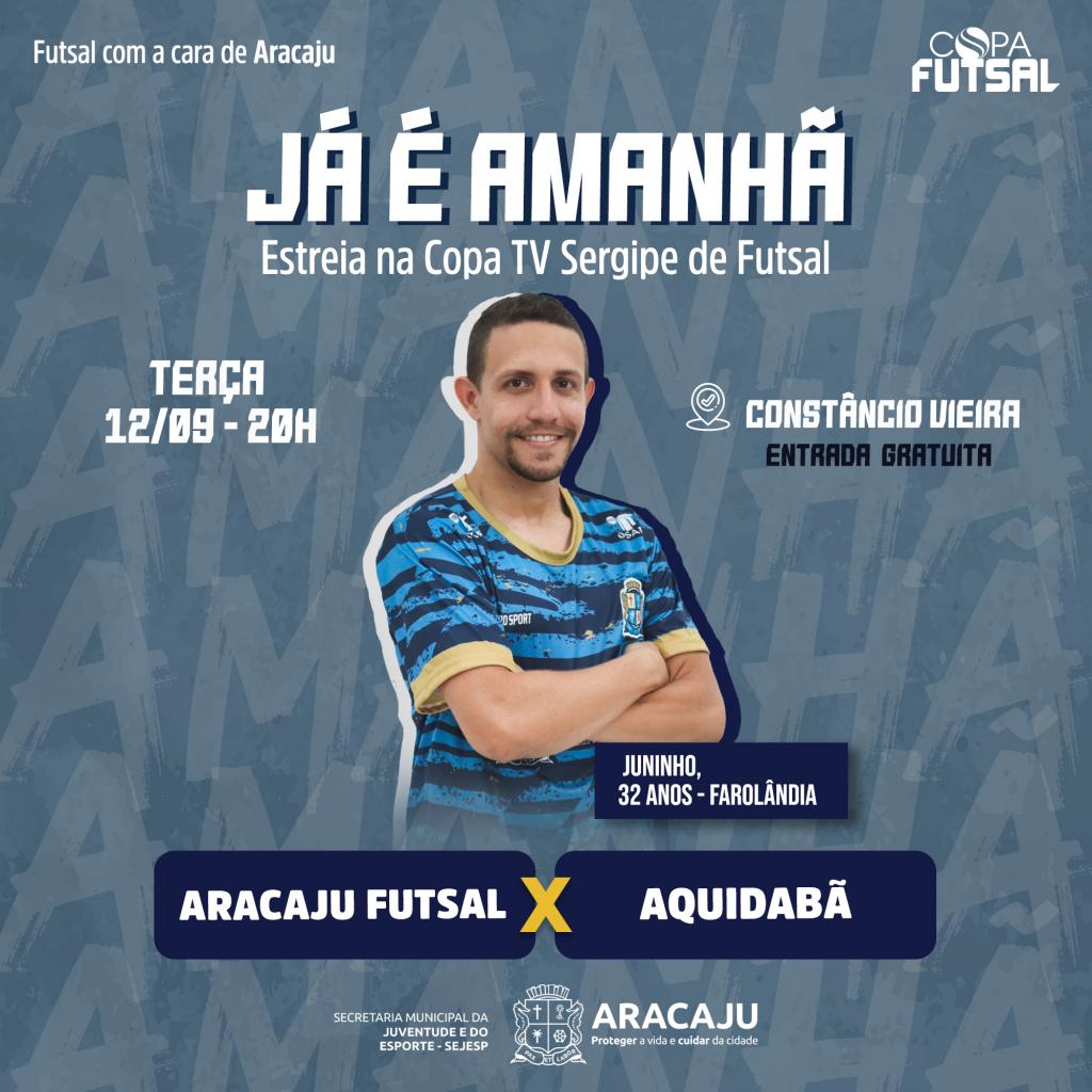 A equipe Aracaju Futsal fará sua estreia na 16ª Copa TV Sergipe de Futsal nesta terça-feira, 12, a partir das 20h, no Ginásio de Esportes Constâncio Vieira, localizado no bairro Treze de Julho, zona Sul da capital.