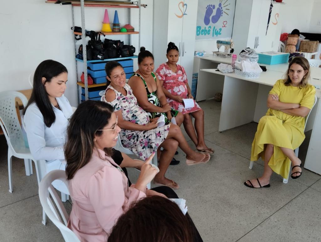 As profissionais que são as referências técnicas (RTs) em Nutrição, Greice Milena Reis, e em Fisioterapia, Mayara Agripino, foram as responsáveis pela roda de conversa na ação que é realizada pela Maternidade Municipal Lourdes Nogueira (MMLN) e o Instituto Mariana Moura, mantenedor do projeto "Bebê Luz".