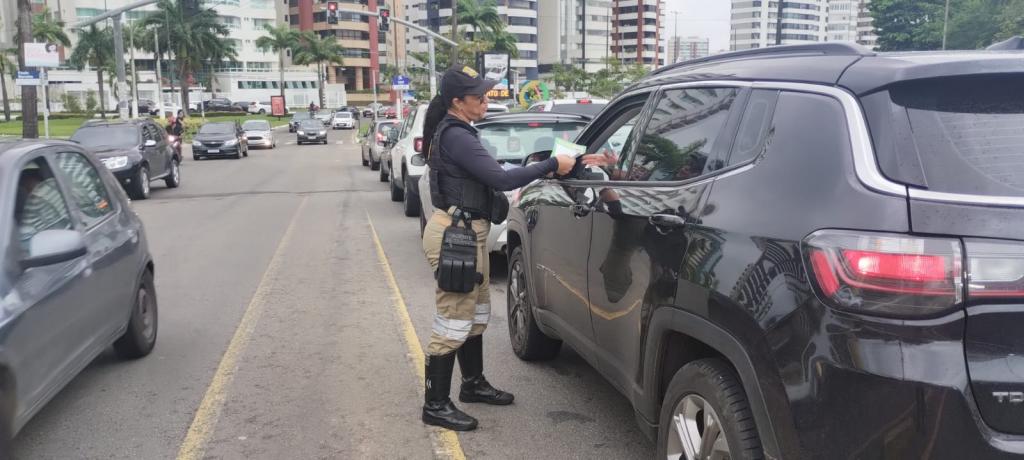 A programação da Semana Nacional de Trânsito, que tem como tema “No trânsito, escolha a vida", continua e a Superintendência Municipal de Transportes e Trânsito (SMTT) de Aracaju, em parceria com a Companhia de Policiamento de Trânsito de Sergipe (CPTran), Polícia Rodoviária Federal (PRF) e as Superintendências de Transportes e Trânsito de Nossa Senhora do Socorro e de São Cristóvão, realizou nesta terça-feira, 19, uma blitz educativa na avenida Beira Mar, nas imediações do Complexo das Palmeiras, para chamar a atenção e conscientizar a população sobre a importância dos cuidados no trânsito.
