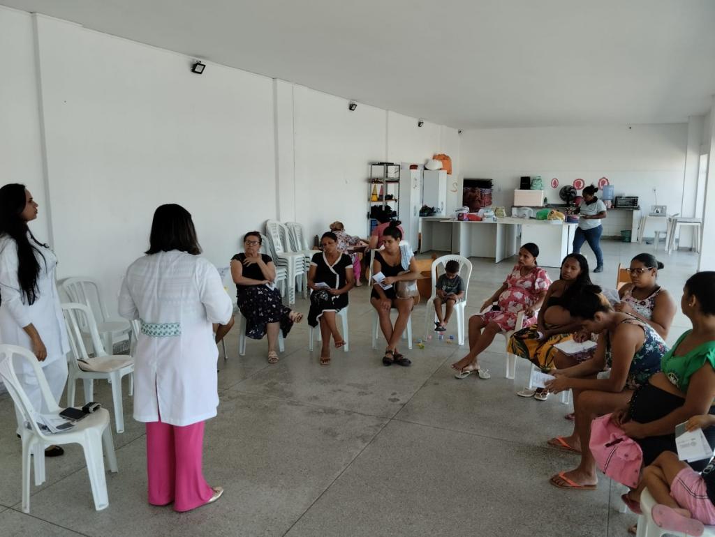 Mais um encontro de difusão de informações, dúvidas sanadas e troca de experiências entre profissionais que atuam na Maternidade Municipal Lourdes Nogueira (MMLN) e as gestantes atendidas pelo projeto "Bebê Luz", no bairro 17 de Março e adjacências. Nesta terça-feira, 26, a assistente social referência técnica da unidade, Glícia Morais, e a enfermeira obstétrica Amanda Camilo participaram da roda de conversa promovida nas instalações do Centro de Referência da Assistência Social (Cras) Diná Menezes.