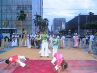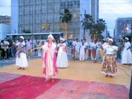 Crianças e adolescentes assistidos pela Secretaria Municipal de Assistência Social e Cidadania (Semasc) mais uma vez despertaram a atenção do público durante as apresentações artísticas e culturais que fazem parte da programação da I Mostra de Arte Social. Desta vez, as apresentações foram realizadas na praça Fausto Cardoso, onde centenas de pessoas que passaram no início da noite de sexta-feira, 25, prestigiaram o trabalho e o talento de crianças e adolescentes que viviam em situações de risco e vulnerabilidade social. A I Mostra de Arte Social terá continuidade amanhã na Escola Técnica Federal de Sergipe a partir das 15 horas e na próxima quinta-feira, dia 1º, na praça Fausto Cardoso, durante todo o dia, com a participação do Same e da Apada, quando será realizada uma grande feira de artesanato. No primeiro espetáculo Vida e Morte, 23 crianças e adolescentes que fazem parte do projeto Criança Cidadã deram um show de cidadania. Com o figurino típico da cultura afro, eles narraram e encenaram a vida do orixá Obaluaiyé para o público, que apreciou o trabalho e conheceu um pouco mais a história da cultura africana. Para o educador social José Carlos Santos, integrante da equipe de educadores da Semasc, essas apresentações em praça pública caracterizam uma forma da Prefeitura de Aracaju mostrar os talentos dessas crianças e adolescentes. Nesta mostra, as pessoas têm a oportunidade de conhecer a capacidade e a determinação dessas crianças e adolescentes. É uma forma de ressocialização e elevação de auto-estima, comenta o educador. A adolescente Camila da Cruz Souza, 16, que faz parte da Oficina de Dança do Projeto Criança Cidadã, demonstra felicidade e comenta a mudança que o projeto da Semasc exerceu em sua vida. Tem dois meses que estou no projeto e minha vida já mudou bastante, comenta. Estou aprendendo e me desenvolvendo muito. Hoje é a prova disso, afirma. Oficina de Dança Vinte adolescentes do Programa Agente Jovem também emocionaram o público com o trabalho desenvolvido na Oficina de Dança. O espetáculo Construção do Corpo - A Obra Humana, dirigido pelo coreógrafo e educador Sidney Azevedo, transmitiu os efeitos que a música e a dança contemporânea exercem para o público. Com a trilha sonora O Corpo, de Arnaldo Antunes, os adolescentes passaram uma mensagem sobre a importância do corpo para a formação e construção da família. A apresentação também teve inspiração em personagens retratados nas obras de Leonardo da Vinci e Van Gogh. No término das apresentações, os aplausos e o sorriso contagiante do público foram a resposta mais concreta que os trabalhos desenvolvidos nos projetos sociais da Prefeitura de Aracaju estão possibilitando às crianças e adolescentes. O ator e bailarino Eduardo Freitas, do Rio de Janeiro, ficou encantado com o trabalho da PMA na descoberta de talentos em crianças e adolescentes de baixo poder aquisitivo. É muito difícil trabalhar com comunidades carentes e, mais ainda, introduzi-los na arte, devido à opção que o jovem tem de escolhas, comenta. Sem dúvida, fazer parte de uma realização como esta, certamente foi resultado de um trabalho bem conduzido por seus instrutores. Uma experiência como esta muda a vida destes jovens, diz Eduardo Freitas. Para o educador social e coordenador da Mostra de Arte Social, Rivaldino Santos, o objetivo desta Mostra é apresentar para a sociedade o resultado dos trabalhos que a Semasc desenvolve com as crianças e adolescentes nas oficinas sócio-educativas realizadas nos Centros de Referência da Assistência Social. É uma prestação de contas com a população dos projetos sociais, além de trabalhar a auto-estima. A reintegração social das crianças e adolescentes, sem dúvida, é a concretização do nosso trabalho, afirma o educador.