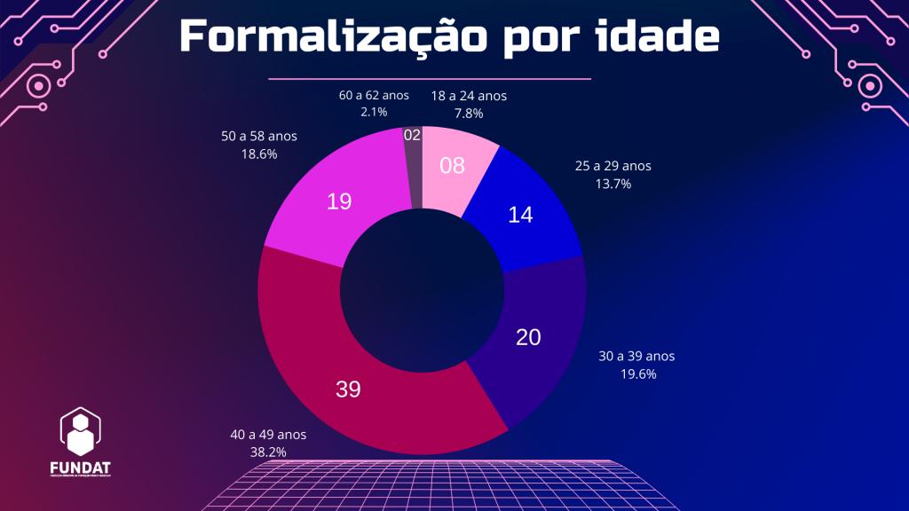 A faixa etária que mais formalizou a abertura de MEI, até o mês de agosto, na capital, foi de 40 a 49 anos. “Isso é também um reflexo da maturidade, quanto mais experientes, mais buscamos pela autonomia das nossas conquistas. Incentivar que esse sentimento aflore o quanto antes nos jovens é uma das nossas missões, para que possamos garantir o seu pleno desenvolvimento profissional”, acredita a presidente da Fundat.