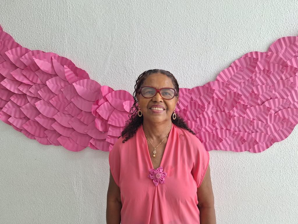 Aos 66 anos, a servidora Rosilda Fortuna dos Santos, auxiliar de serviço de saúde, participou da ação e relata que já perdeu uma ente querida para um câncer, motivo pelo qual ela passou a se conscientizar e manter exames preventivos de câncer de mama e câncer de colo do útero em dia.