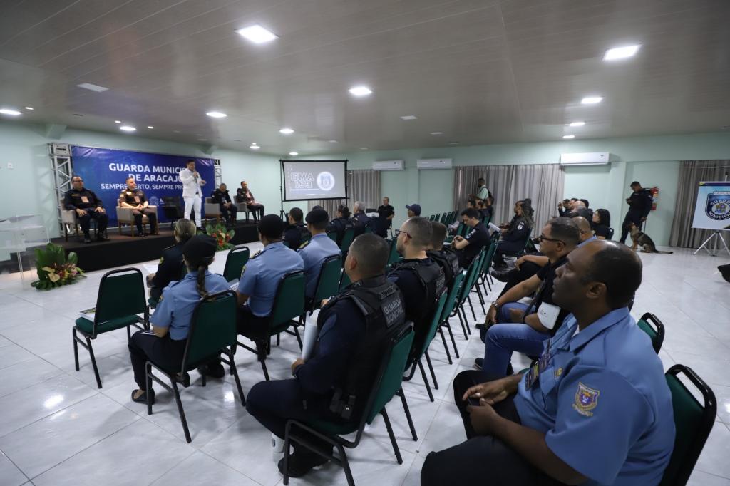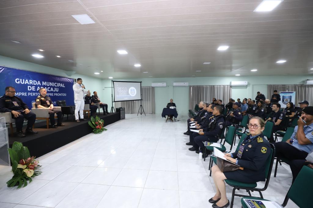 O diretor-geral da Guarda Municipal de Aracaju (GMA), subinspetor Fernando Mendonça, foi o primeiro palestrante do encontro e falou sobre a estrutura administrativa da GMA, plano de carreira, estrutura operacional, órgãos de controle, entre outros assuntos importantes para o setor, citando ainda algumas boas práticas da GMA, como o programa Anjos Azuis e a Patrulha Maria da Penha. Ele falou também sobre o grande reconhecimento que a instituição tem perante a sociedade e outras entidades.