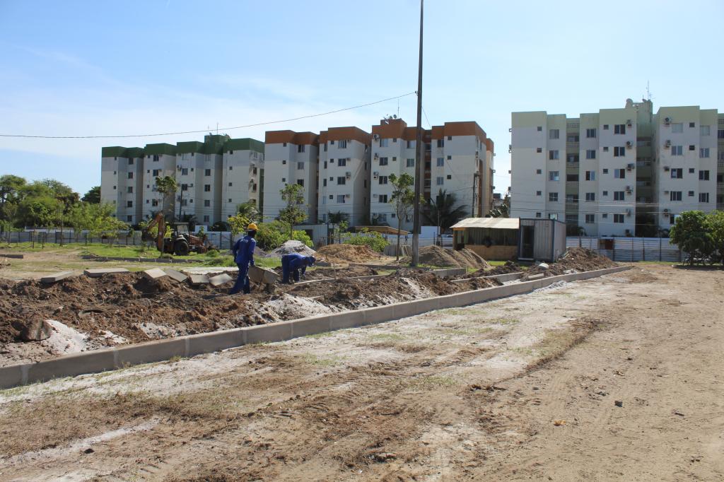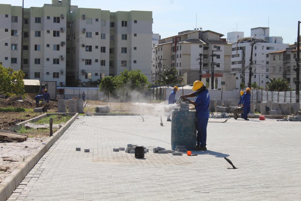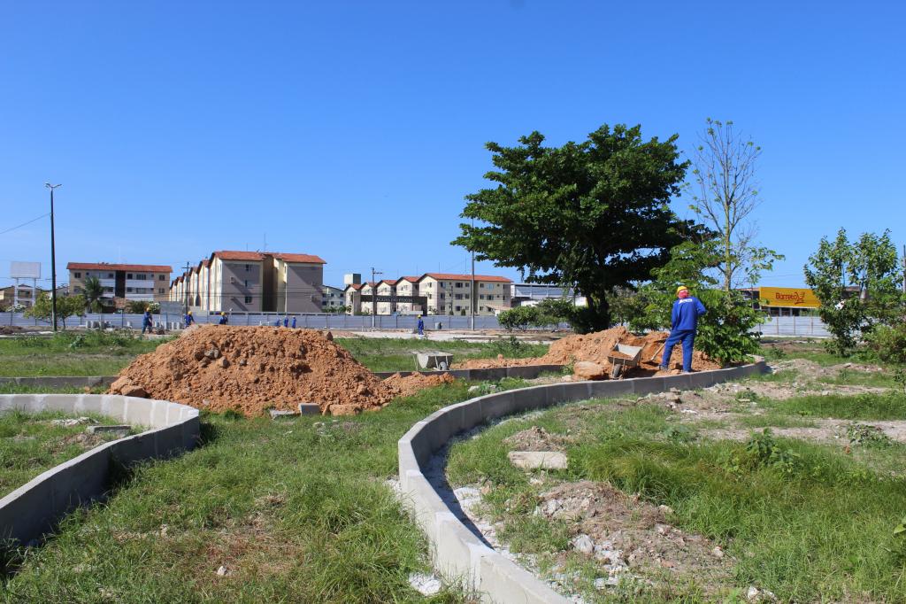 O serviço, realizado pela Empresa Municipal de Obras e Urbanização (Emurb), segue em ritmo acelerado, ao passo em que executa os passeios em concreto e os canteiros da praça.