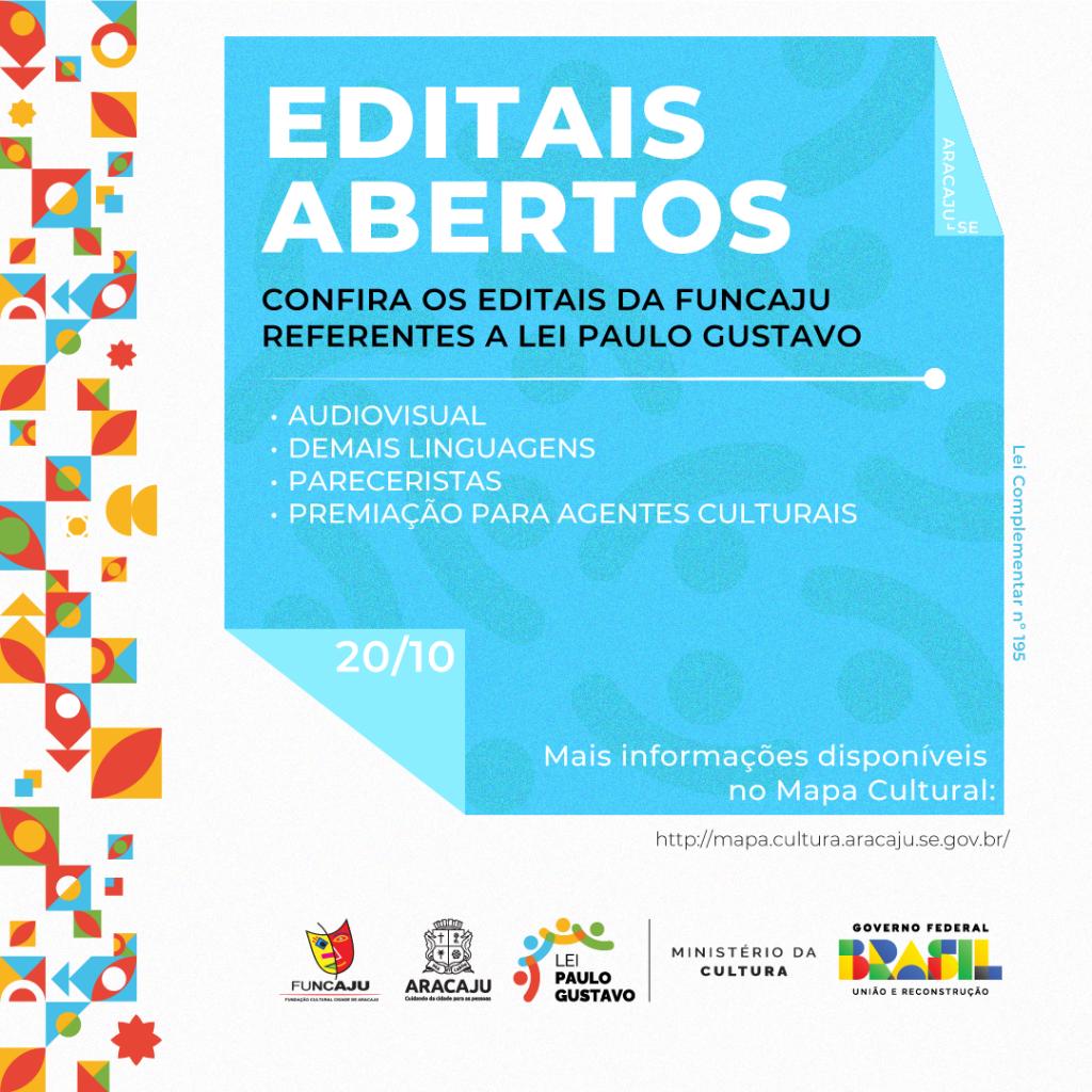 A Prefeitura de Aracaju, por intermédio da Fundação Cultural Cidade de Aracaju (Funcaju), torna público nesta sexta-feira, 20, os editais referentes à aplicação da Lei Paulo Gustavo (Lei Complementar nº 195/2022) no município, para fomento ao setor cultural.