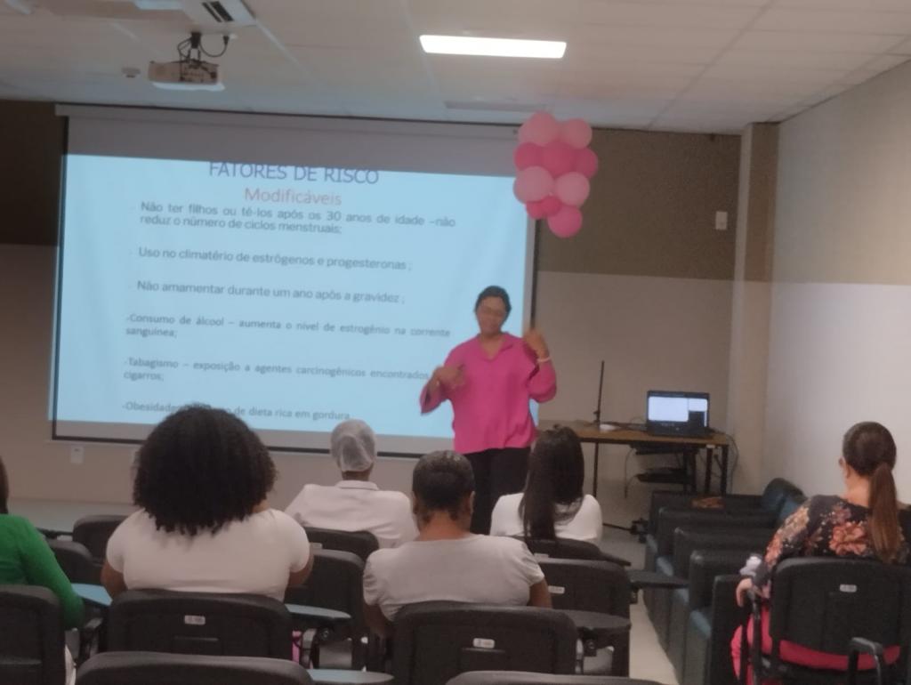 Em continuidade às ações voltadas aos colaboradores, em alusão ao Outubro Rosa, a Maternidade Municipal Lourdes Nogueira (MMLN) promoveu mais uma palestra, na manhã desta sexta-feira, 20. Desta vez, a atividade reforçou a importância da prevenção, detecção e combate ao câncer de mama, seguida de um relato pessoal contextualizando esse enfrentamento, dentro dos propósitos da campanha.
