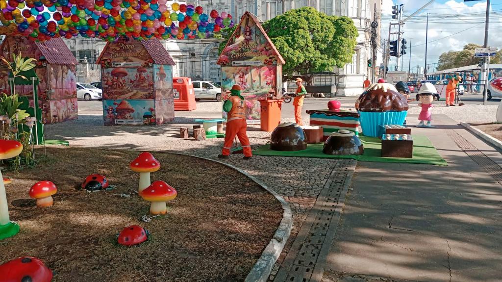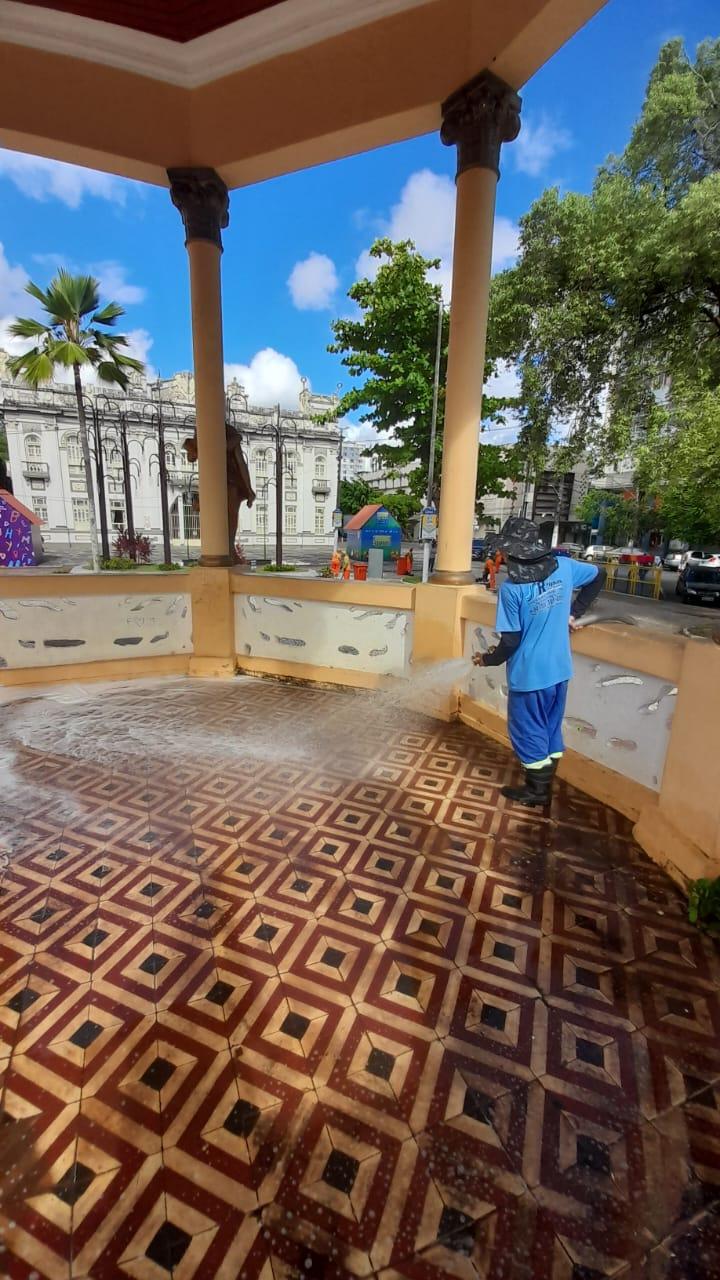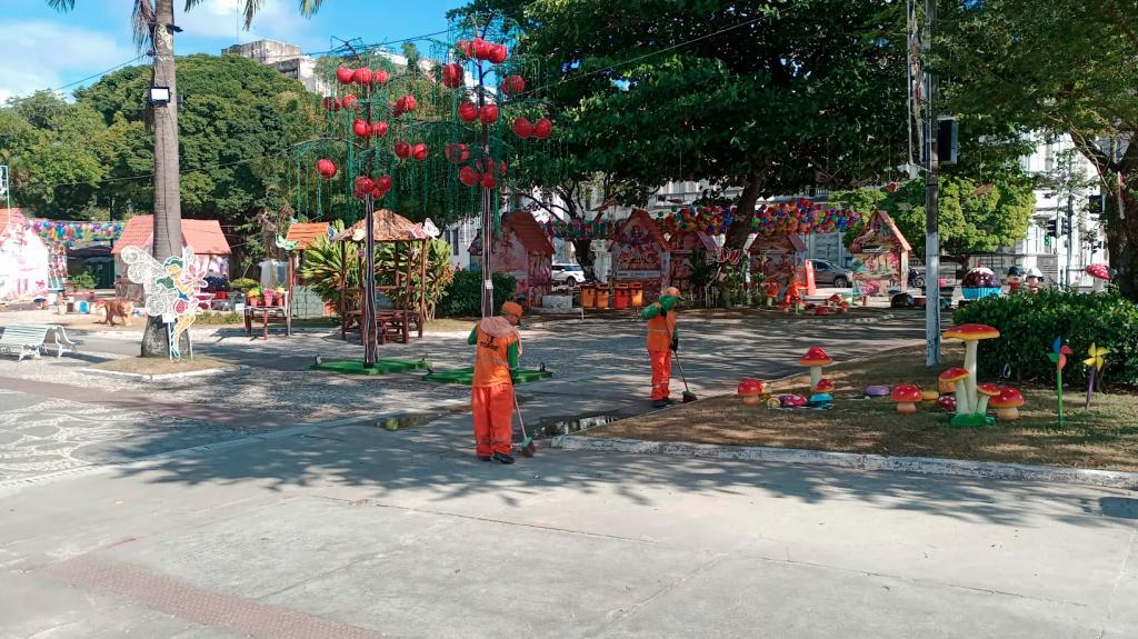 No local, os trabalhos de varrição e coleta de resíduos têm início ainda nas primeiras horas da manhã e englobam um quantitativo de 25 agentes. Enquanto isso, o descarte correto de materiais tem sido estimulado com a disponibilização de 16 contêineres, distribuídos em formato de ilhas, bem como de Pontos de Entrega Voluntária para o que o for reciclável.
