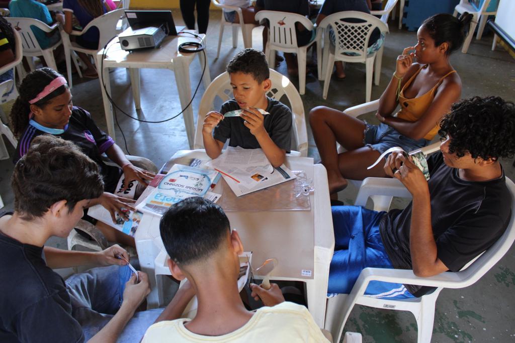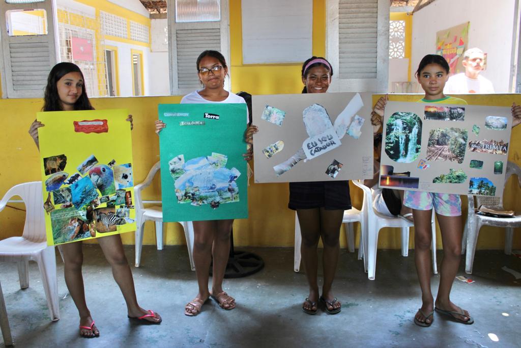 Durante o momento, foram compartilhadas técnicas de composição de cartazes, em que os jovens puderam discutir temas e confeccionar cartazes em grupo, por meio de colagem de material recortado em revistas, com temas que eles mesmos puderam escolher. Dentre os assuntos abordados, os participantes produziram trabalhos criativos sobre paz, racismo e também meio ambiente, destacando-se proteção animal e consciência ecológica.