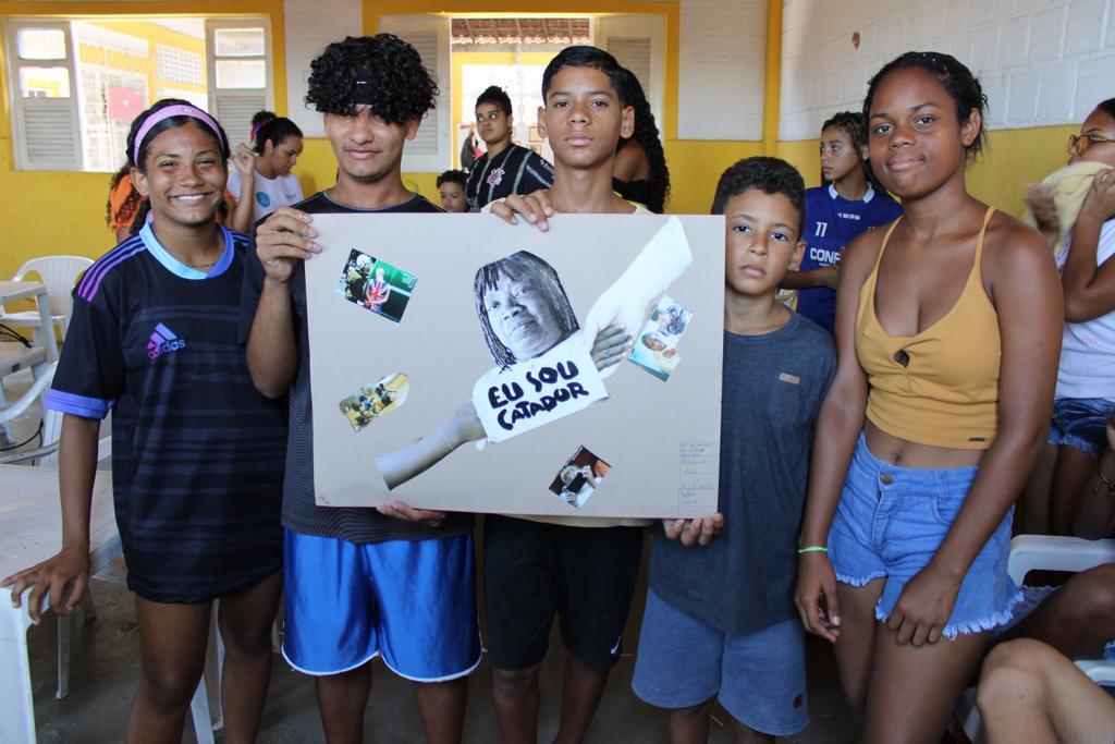 A ação foi aprovada por Felipe Menezes, que gostou de contribuir com a produção do cartaz do seu grupo. “Eu gostei da oficina, aprendi coisas novas e foi diferente do que fazemos. Foi bem legal”, conta.