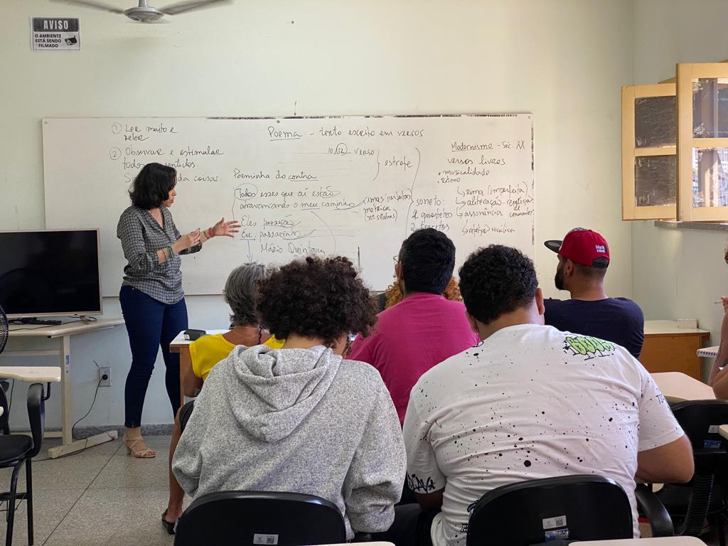 O principal objetivo da palestra foi discutir a linguagem poética e as especificidades da poesia, como o uso de figuras de linguagem, rimas e métricas. Além de trazer autores clássicos e de referência nas linguagens de poema e poesia, como Mário Quintana, Carlos Drummond de Andrade e Manuel Bandeira. A oficineira Acácia Rios falou principalmente de intertextualidade e sobre como um único texto pode inspirar vários outros textos, seja tanto na intertextualidade concordante quanto na discordante, como as paródias.
