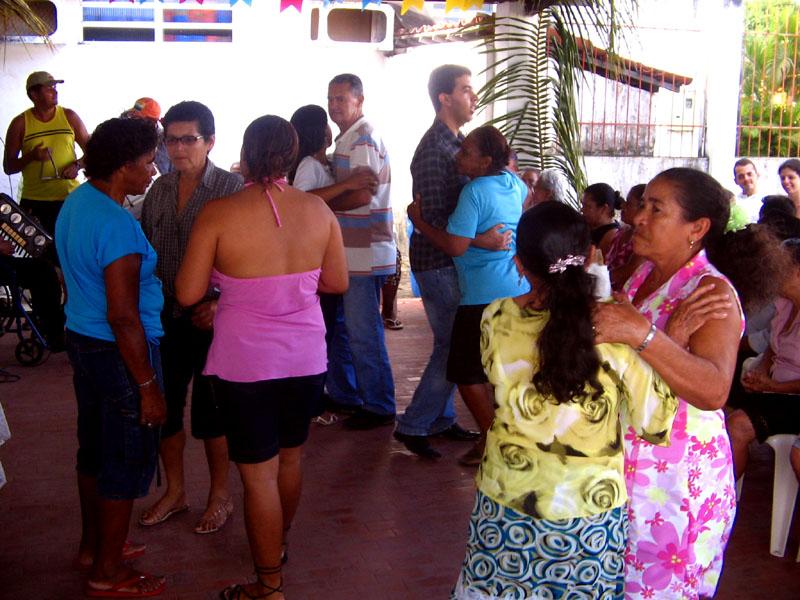 O trio pé-de-serra da comunidade do bairro São Carlos animou o forró da Unidade de Saúde da Família (USF) Onésimo Pinto na sexta-feira, dia 22. O grupo de idosos Direito de Viver, formado por 60 pessoas, marcou presença na festinha junina da unidade. A organização do forró ficou por conta da Equipe Azul do Onésimo Pinto. A tarde da sexta-feira foi de muito arrasta-pé e animação. Profissionais de saúde, usuários, familiares e amigos prestigiaram a festa. A gente trabalha com o conceito de empoderamento, ou seja, fazendo com a população se torne interdependente e ao mesmo tempo parceira da unidade. Aqui na festa, por exemplo, os funcionários contribuíram com alimentação e bebidas e os idosos também. Até mesmo o trio pé-de-serra é da comunidade do bairro São Carlos, isso é fantástico. Em outras palavras: isso aqui é deles e todos estão voltados para a promoção de saúde, que é nosso objetivo maior, destacou o enfermeiro coordenador da Equipe Azul, Fabrício Almeida dos Santos. De acordo com a gerente da Unidade de Saúde da Família Onésimo Pinto, Valdelira Carvalho Coelho de Mendonça, o grupo de idosos vai completar um ano de existência no próximo mês de julho. De 15 em 15 dias eles se reúnem, desenvolvem e participam de várias atividades. São palestras, atividades físicas, oficinas terapêuticas, passeios e festas em datas comemorativas, como o São João, disse Valdelira satisfeita com o trabalho. A festinha de São João foi mais uma prova da promoção de saúde da unidade, pois muita gente dançou e brincou como se fosse criança. As equipes Amarela e Verde também realizaram São João na segunda-feira, dia 18. Onésimo Pinto A USF Onésimo Pinto pertence à 8ª Região e fica na localizado na Avenida Centenário, no Bairro Jardim Centenário. Atualmente, a unidade atende a mais de 20 mil pessoas das comunidades dos bairros São Carlos, Jardim Centenário, Maria do Carmo e Nova Liberdade.