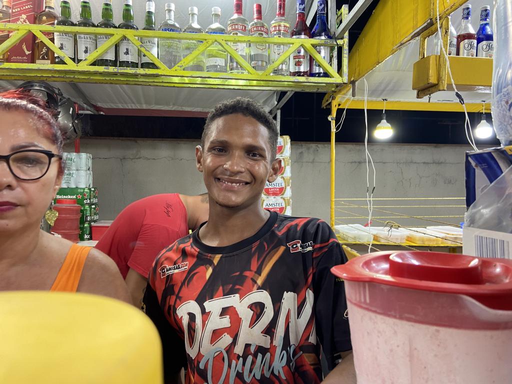 "O segredo para vender bem é fazer uma boa propaganda e espalhar simpatia e carisma, junto com uma boa risada do cliente." Quem revelou seus talentos na hora das vendas foi o ambulante Alejandro Patrick Silva Santos, 20 anos, vendedor da barraca 'Bahia Drinks', uma entre as mil montadas na Orla da Atalaia para comercialização durante o Pré-Caju 2023, trabalho realizado pela Prefeitura de Aracaju, através da Empresa Municipal de Serviços Urbanos (Emsurb), para regulamentar o comércio de ambulantes nos dias de festa.