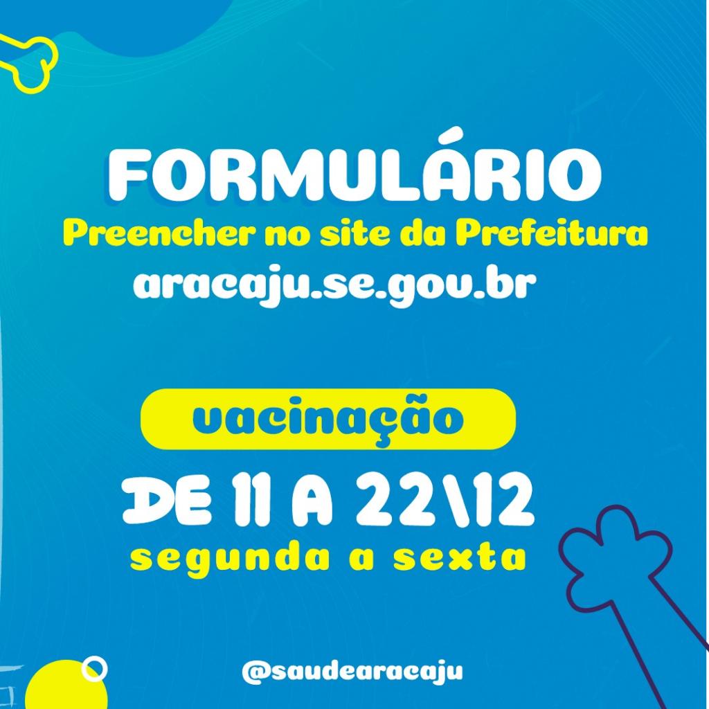 A partir desta semana, a Prefeitura de Aracaju, por meio da Secretaria Municipal da Saúde (SMS) disponibiliza, através do www.aracaju.se.gov.br, um formulário para que tutores com mais de cinco animais e Organizações Não Governamentais de Proteção Animal (ONGs) possam solicitar vacinação antirrábica a domicílio. A iniciativa tem como objetivo facilitar ainda mais o acesso aos imunizantes e ampliar a cobertura vacinal de cães e gatos.