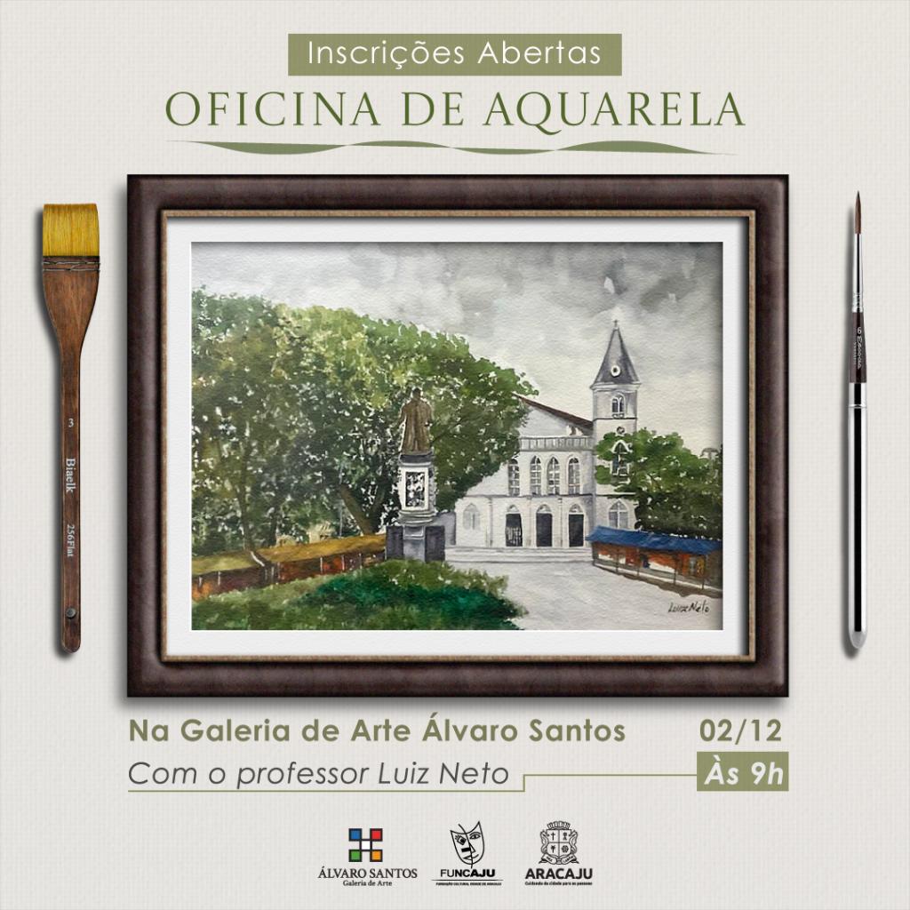 A Prefeitura de Aracaju, por intermédio da Fundação Cultural Cidade de Aracaju (Funcaju), abriu as inscrições para a Oficina de Aquarela, na Galeria de Arte Álvaro Santos. São disponibilizadas 20 vagas para a realização da oficina no dia 2 de dezembro, das 9h às 11h. A oficina será ministrada pelo artista plástico Luiz Firmino Neto, que também é curador da Exposição Nacional de Aquarela, ainda disponível para visitação na galeria.