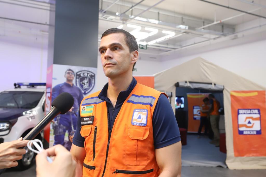 A Defesa Civil de Aracaju apresenta a estrutura de um abrigo temporário, com materiais informativos sobre prevenção de riscos e vídeos educativos. A ação reforça o compromisso com a ampliação de diálogo com a população.