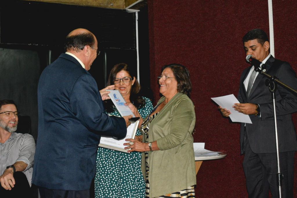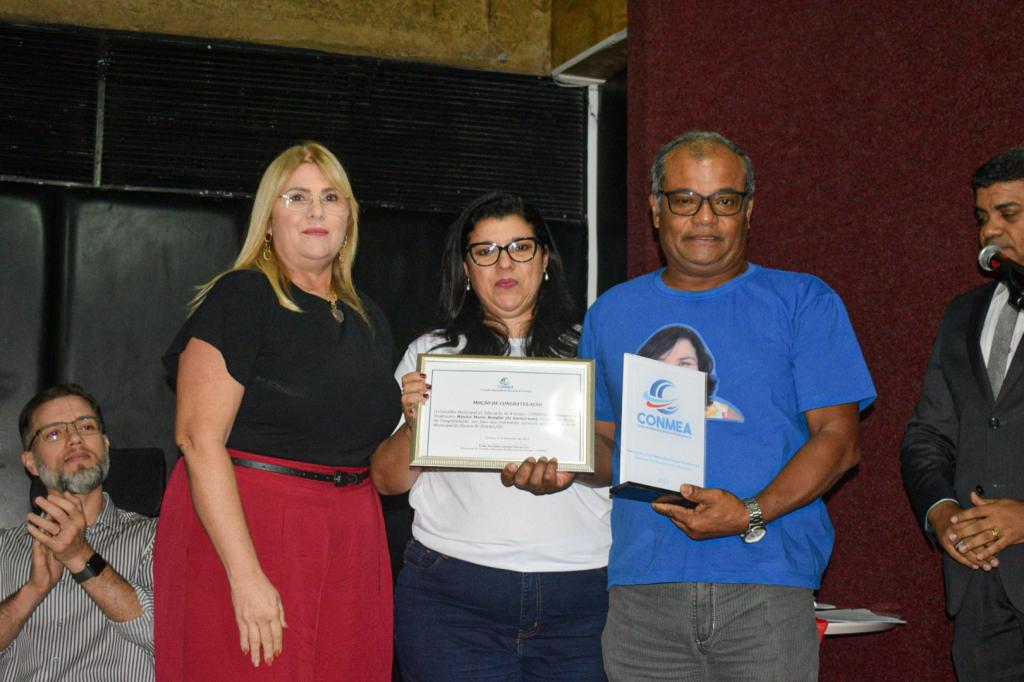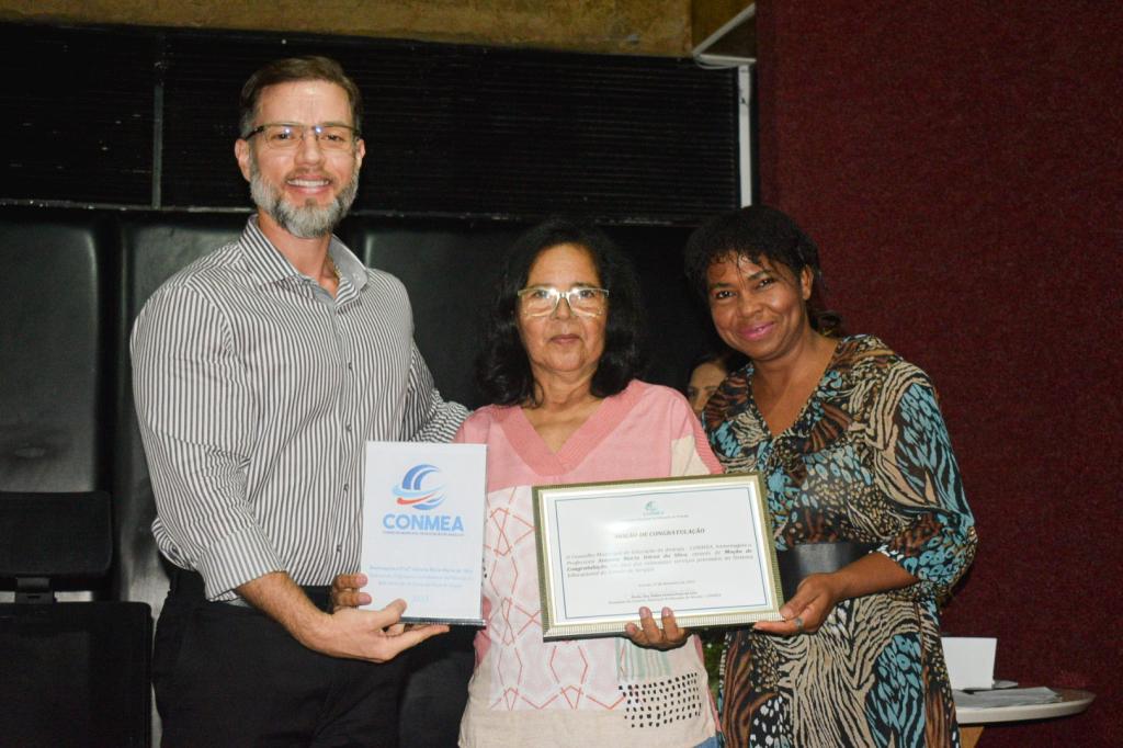 Visando ampliar as homenagens e fortalecer ainda mais o reconhecimento dos demais profissionais da Educação, o Conmea também realiza as moções de congratulação, destacando a importância da trajetória e da contribuição dos educadores. No ato, três professoras receberam a homenagem: Mônica Maria Bonfim (in memoriam), Antônia Maria Dórea e Margarida Maria Teles.