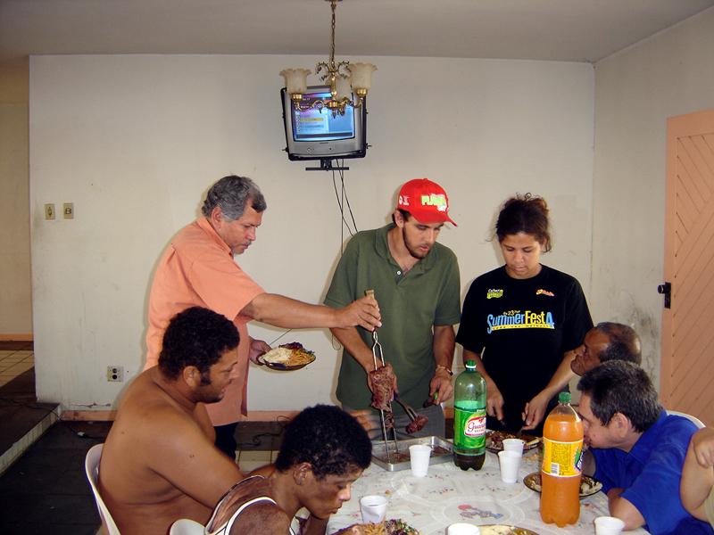 Iniciado em Aracaju em janeiro de 2006, o projeto Residências Terapêuticas, executado pela Rede de Atenção Psicossocial (REAP) da Secretaria Municipal de Saúde (SMS), em convênio com o Ministério da Saúde, tem o objetivo de abrigar moradores que eram usuários de hospitais psiquiátricos e envolvê-los numa vivência familiar. Em cada residência, moram entre seis e oito pessoas que têm acompanhamento de cuidadores durante 24 horas. O nosso desafio é transformar esta vivência numa vivência comum, num ambiente de lar mesmo, comentou a coordenadora do Projeto Residências Terapêuticas em Aracaju, Simone Barbosa. O município possui atualmente quatro residências terapêuticas, uma no bairro São José, uma no bairro Suissa e duas no bairro Atalaia. Segundo Simone, hábitos simples, como arrumar a cama, tomar banho, cuidados com a higiene pessoal, ir à missa, comprar pão na padaria, entre outros, são realizados pelos próprios moradores. São coisas que a gente nem dá tanto valor, mas que essas pessoas estão reencontrando e sentindo prazer em realizá-las. Elas agora têm a oportunidade de externar seu desejo, suas vontades, escolher o que vão comer, por exemplo, disse. A escuta e a participação nas ações da residência são um dos focos principais do projeto. Como resultado das assembléias realizadas nas residências, na última terça-feira, dia 7, os moradores de uma das casas escolheram fazer um churrasco. Na ocasião, muitos aprenderam na hora como cortar, salgar a carne e colocá-la no espeto para ir à churrasqueira. A idéia é exatamente envolver as pessoas e fazer com que elas se apropriem daquele espaço. Com isso, a gente qualifica o trabalho e melhora a moradia, comentou o coordenador do Projeto Movimento da SMS, Dagoberto Machado, que também participa dos encontros.