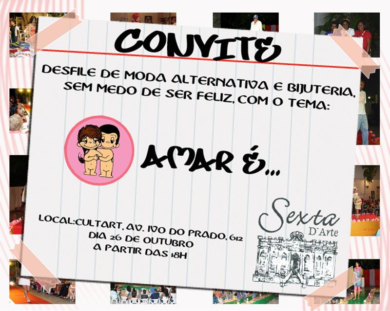 Amanhã, sexta-feira, é o grande dia do desfile organizado pelo Centro de Atenção Psicossocial (Caps) Liberdade. Quem participar do Sexta D´Arte, no Centro de Cultura e Arte (Cultart), terá a oportunidade de assistir a usuários, parentes e modelos convidados desfilando o figurino dos anos 80. ´Amar é...´ é o tema do desfile, que também trará para a passarela bijuterias produzidas pelos próprios usuários do Caps Liberdade. Após o desfile, as peças serão vendidas em um bazar e os recursos arrecadados serão revertidos em benefícios para o próprio Caps. O evento acontece a partir das 18 horas, no prédio do Cultart, que está localizado nas proximidades do cruzamento entre as avenidas Ivo do Prado e Barão de Maruim. Informações: (79) 3179-1050.