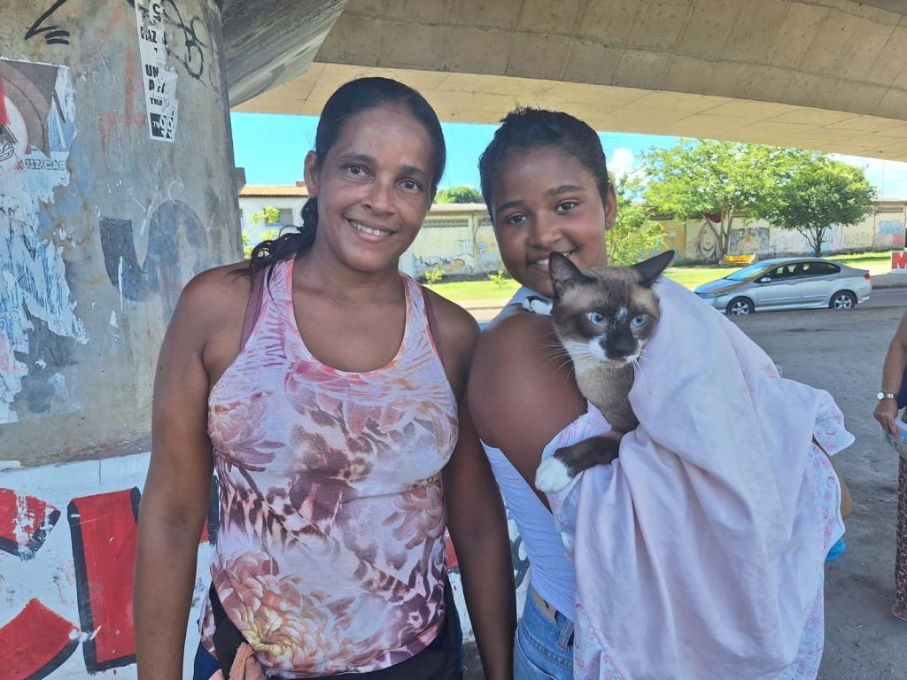 “Meu gato não se vacinou no ano passado, minha vizinha soube que estava acontecendo essa vacinação aqui e me avisou. Vendo espetinho no Centro, saí de lá e chamei minha menina para a gente trazer ele e estou muito agradecida”, conta Aline.