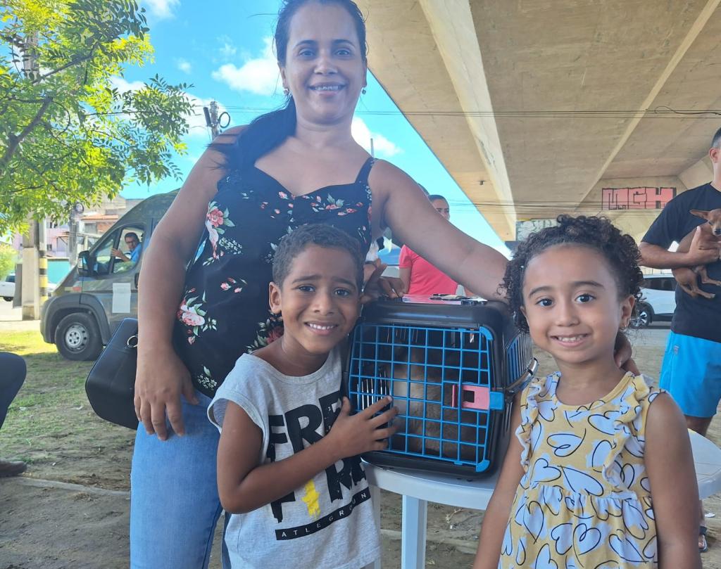 Daiane Andrade saiu do bairro Cidade Nova, acompanhada dos filhos, para vacinar Bob, seu único gato. “Ano passado, eu não vacinei ele porque estava com uma bebê bem pequena e não tinha como sair de casa. Por isso, depois que vi na televisão que aqui teria a vacinação, vim hoje porque é muito importante essa proteção contra a raiva tanto para os animais quanto para as minhas crianças”, relata Daiane.