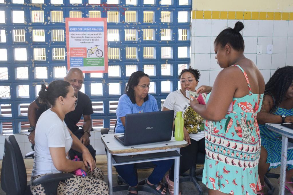 Na Emef Deputado Jaime Araújo, localizada no bairro Soledade, Elisângela Bispo, de 45 anos, disposta a retomar os estudos, se matriculou na Educação para Jovens e Adultos (EJA) na manhã deste primeiro dia de matrícula.
