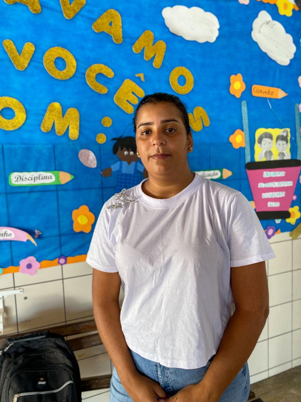 "Como não sei lidar com internet ou computador, vim à escola para que pudessem me orientar na matrícula. Estou sendo bem atendida e quero estudar aqui. Meus filhos foram alunos daqui, minha neta está matriculada aqui, e resolvi terminar meus estudos nessa escola porque conheço a qualidade do ensino", expressa Elisângela.