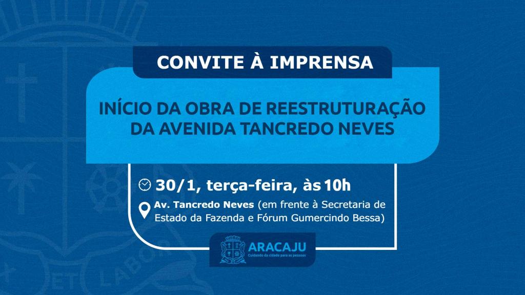 A Prefeitura de Aracaju convida a imprensa para o ato de assinatura da ordem de serviço para o início da obra de reestruturação da avenida Tancredo Neves.