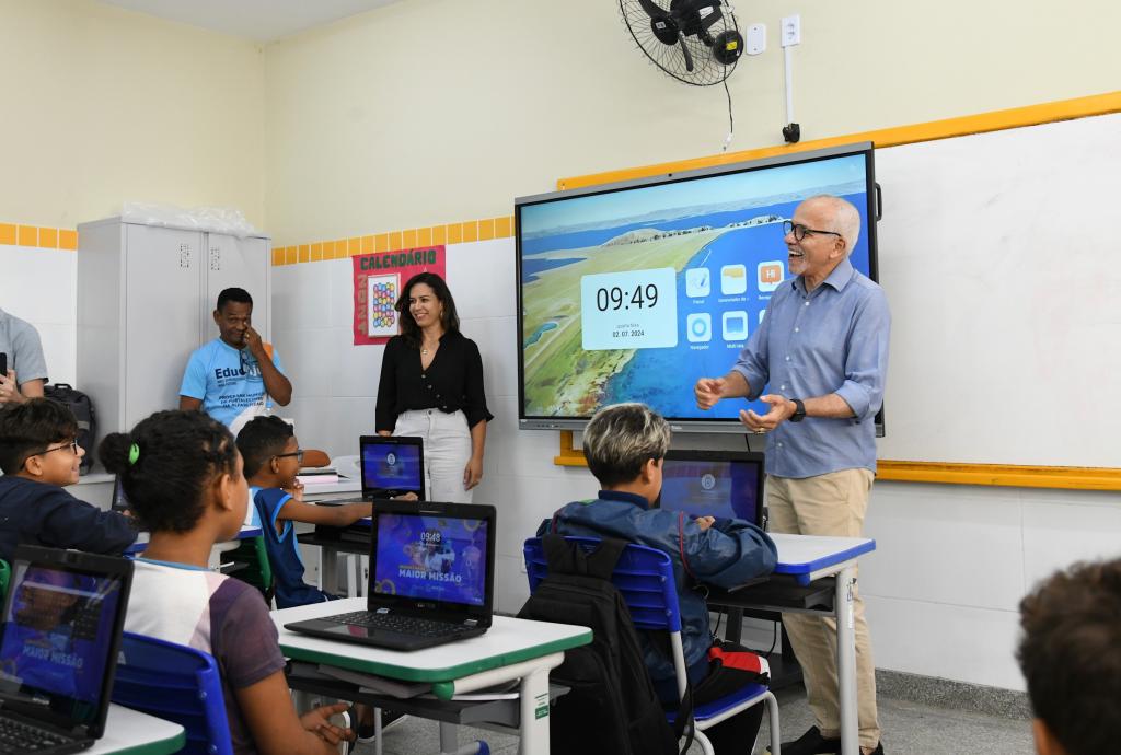 O Escola Tech é um conjunto de soluções tecnológicas que dinamizam e potencializam o ensino-aprendizagem em sala de aula e equipará 100% das escolas municipais da capital com displays interativos, câmeras de reconhecimento facial, totens para a chamada e sistema de inteligência artificial.