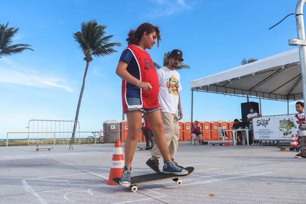 Entre os alunos presentes, estava Maria Flor, de 10 anos, iniciante no processo de aprendizado sobre o skate, sendo sua segunda aula sobre a modalidade no Projeto Verão. “Eu acho legal, porque estamos aprendendo aqui. É um momento único, que a gente consegue andar com o skate e aprender um pouco mais. Eu já consegui andar e fazer um caranguejo [manobra]”, disse sorridente a aluna.
