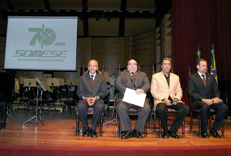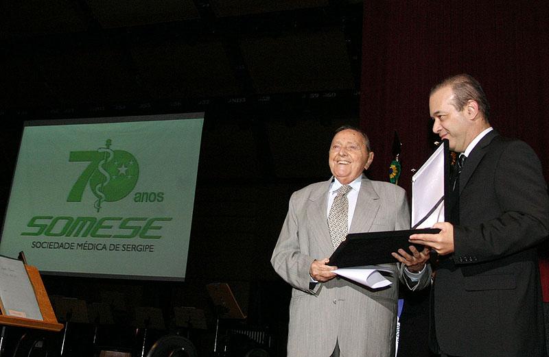 O prefeito de Aracaju, Edvaldo Nogueira, participou na noite do último sábado, dia 20, da solenidade de comemoração dos 70 anos da Sociedade Médica de Sergipe (Somese). A solenidade aconteceu no Teatro Tobias Barreto (TTB), onde foi lançado um catálogo contando a história da entidade, que teve o apoio da Prefeitura Municipal de Aracaju (PMA). Na opotunidade, foram homenageados ex-presidentes da entidade e o médico sergipano Eraldo Machado de Lemos, membro da primeira Diretoria da Associação Médica Brasileira (Amab). É um momento de muita alegria para todos nós sergipanos, poder comemorar os 70 anos da Somese. Num país no qual é tão difícil que as instituições tenham longevidade, uma entidade sergipana completa 70 anos, vivendo intensamente, trabalhando, colaborando, contribuindo para o desenvolvimento da nossa cidade e do nosso Estado, afirmou o prefeito Edvaldo Nogueira. O presidente da Somese, Roberto Gurgel, falou sobre o papel exercido pela entidade nesses anos. A Somese contribuiu efetivamente para os avanços da Medicina no Estado, bem como para a organização dos médicos sergipanos, apontou. A solenidade foi encerrada com a apresentação Orquestra Sinfônica de Sergipe e Wagner Tizo. Participaram da comemoração o governador Marcelo Déda; os secretários municipais Marcos Ramos (Saúde); Luiz Carlos (Procuradoria Geral) e Antônio Samarone (Transporte e Trânsito); o vereador Emanuel Nascimento (líder do prefeito na Câmara Municipal de Aracaju); o presidente da Associação Médica Brasileira, José Luiz Gomes do Amaral; o secretário estadual de saúde, Rogério Carvalho; entre outras autoridades e médicos. Somese Segundo informações do site da Somese (www.somese.com.br), a primeira tentativa dos médicos de Sergipe em se organizarem através de uma entidade associativa data do final da segunda década republicana, com a fundação da Sociedade de Medicina de Sergipe, em 15 de outubro de 1910. No dia seguinte, a entidade publicou seus estatutos no jornal ´O Estado de Sergipe´. Além de médicos, congregava dentistas e farmacêuticos. O primeiro presidente foi o Dr. Helvécio Andrade. Infelizmente, a Sociedade teve vida efêmera, uma vez que, apenas um ano após a sua instalação, ela foi extinta. Somente em 1919 ocorreu uma segunda tentativa de organização médica: cria-se a Sociedade de Medicina e Cirurgia de Sergipe, em 14 de julho, tendo como primeiro presidente o Dr. Francisco Fonseca. Até a construção do Hospital de Cirurgia, a entidade teve uma destacada atuação política, quando no seu comando estava o eminente cirurgião Augusto Leite. Depois a entidade passou por um período de declínio, sendo desativada. Em 27 de junho de 1937, finalmente, é fundada a Sociedade Médica de Sergipe, que perdura até hoje lutando pelos interesses da classe. E, segundo o professor Henrique Batista, da Universidade Federal de Sergipe (UFS) e ex-presidente da Somese, a entidade teve, na sua evolução histórica institucional, três fases: a fase da Intencionalidade, que perdurou até 1949, com o fim do longo mandato do Dr. Augusto Leite. Com a ascensão do Dr. Machado de Souza à presidência, inicia-se uma nova etapa, denominada de Fase de Concretização, que vai até o final da décima quarta diretoria, em 1971. A partir daí, e até os dias de hoje, perdura a Fase de Emancipação, onde a Somese consolidou o seu prestígio no seio da comunidade sergipana, notadamente a partir do trabalho da vigésima segunda diretoria, sob o comando do Dr. José Hamilton Maciel Silva, empossado em de 4 de outubro de 1985 após histórica disputa eleitoral. Depois dele, a entidade teve um enorme salto de qualidade, com o trabalho renovador e revolucionário da vigésima sexta diretoria, sob o comando do Dr. Lúcio Antônio Prado Dias, criador do Departamento de Convênio, talvez a maior realização e conquista da categoria, com reflexos importantes no defesa do exercício da profissão médica. Os presidentes que lhe sucederam, William Soares, Henrique Batista e agora, com a eleição, em 2002, de uma chapa de renovação encabeçada pelo médico Roberto Gurgel, trouxeram e ainda vêm incorporando cada vez mais, maiores e melhores benefícios para a categoria.