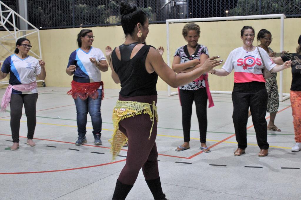 A instrutora de dança, Regina Khalil, guiou as senhoras e senhoritas na atividade prática, que envolveu diversos tipos de dança e muito movimento livre. Para ela, a dança é um elemento fundamental na vivência feminina. “É importante primeiro para a saúde, depois, o despertar o feminino, que muitas mulheres o deixam trancado e eu busco puxar esse fio para que elas possam desabrochar e se empoderar”, pontua.