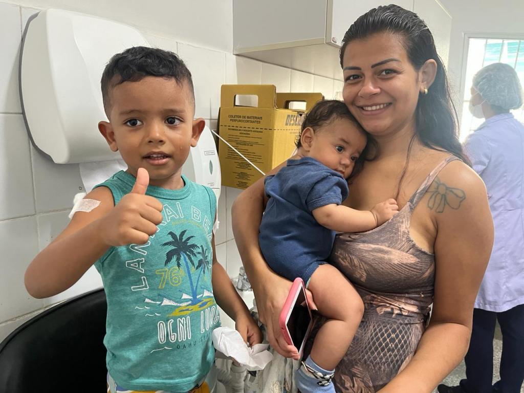 Géssica Cardoso levou seus dois filhos para se imunizar e também destacou a relevância da vacinação. “Quando soube da vacinação pela TV, logo vim para a unidade de saúde. Aqui, sempre sou muito bem recebida, já conheço os funcionários e utilizo todos os benefícios do Sistema Único de Saúde. Vacinar é um ato de amor por mim, pelos meus e por toda comunidade”, frisa Géssica.